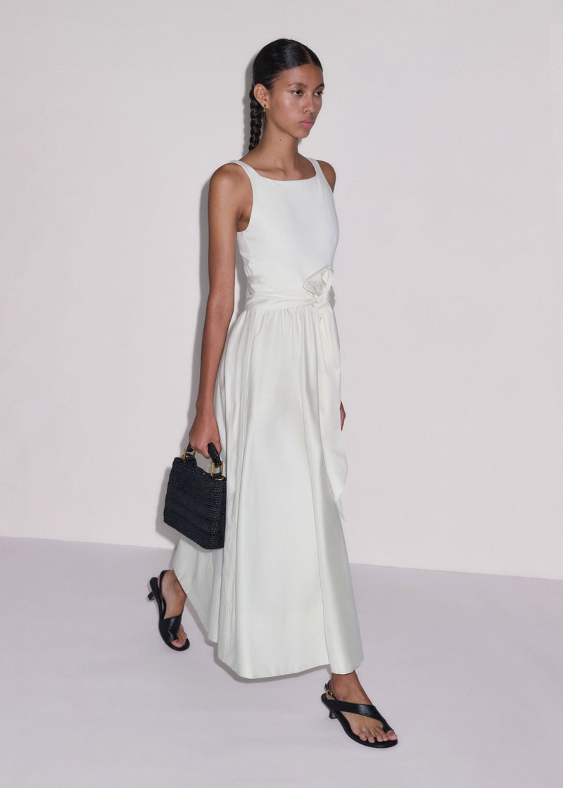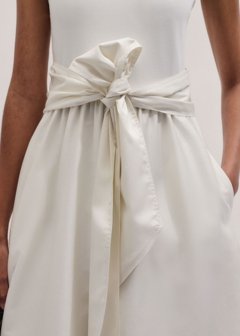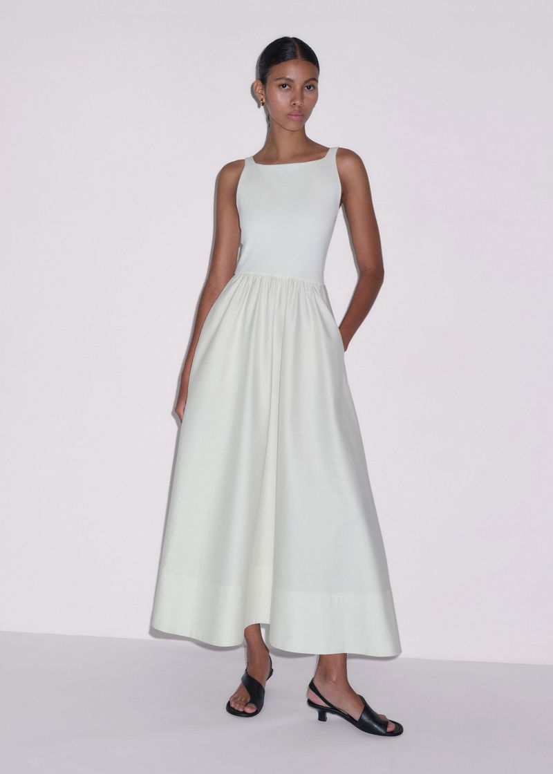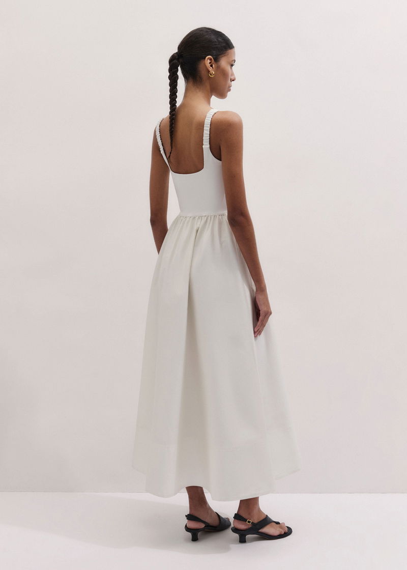 ME+EM's Cream Fit + Flare Maxi Dress features stretch-infused modal jersey across the bodice, contrasted with a clean cotton-poplin across the skirt.