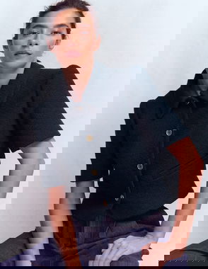 ME+EM's Ivory Bouclé Contour Jacket is designed with contoured seams which create a flattering, structured shape.