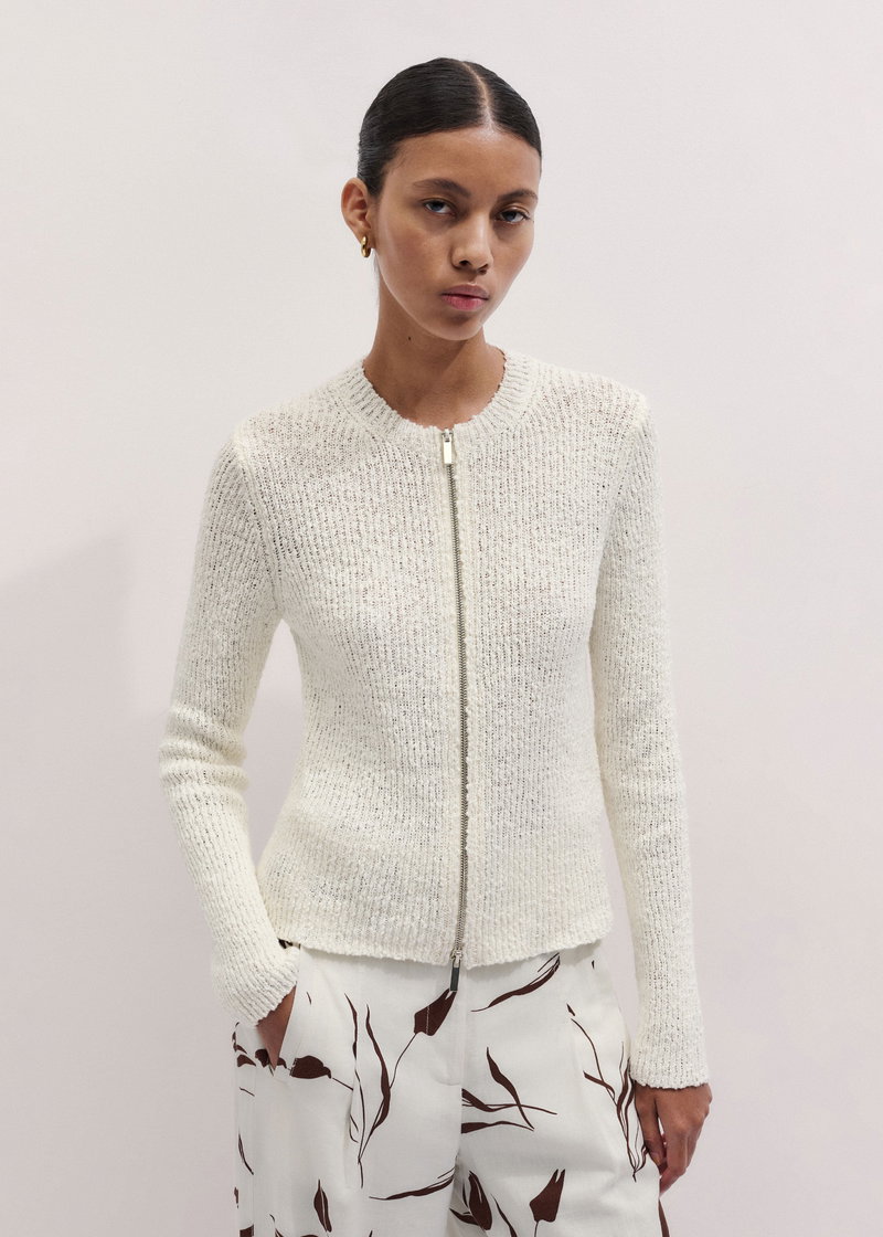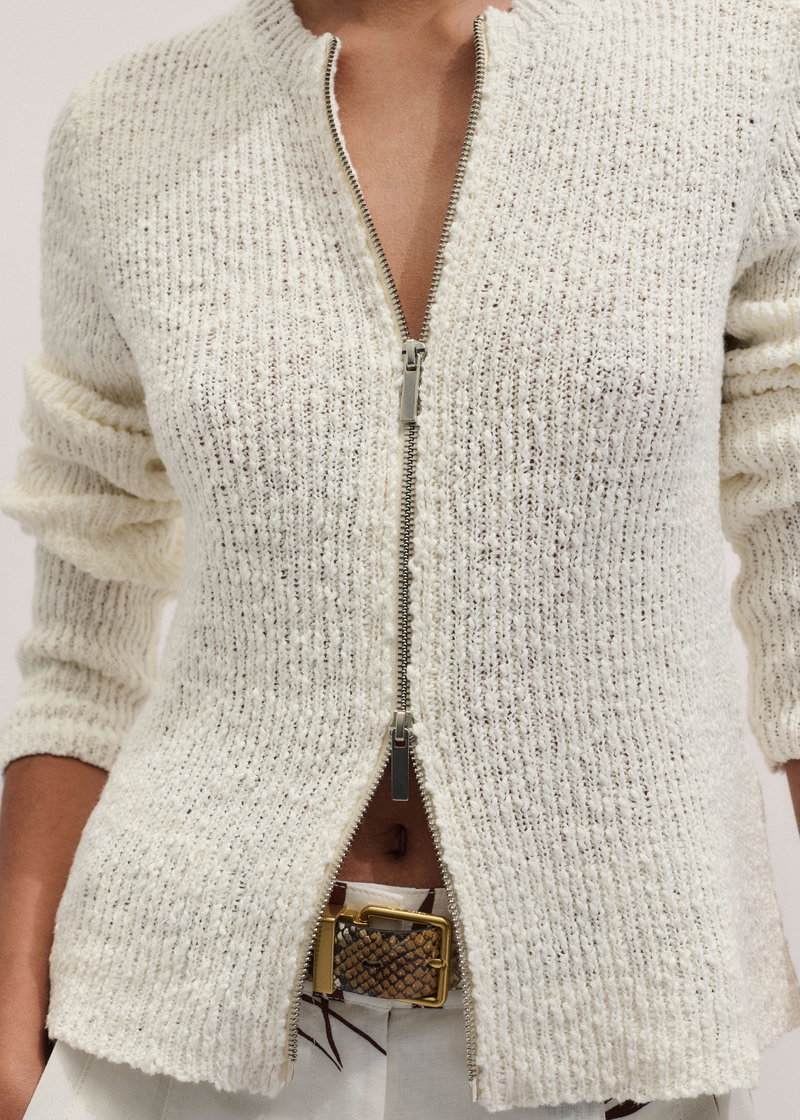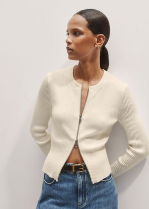 ME+EM's Cream Double Zip Cardigan is elevated with a double-zip fastening for a customisable amount of coverage.