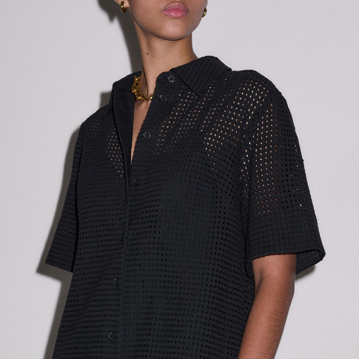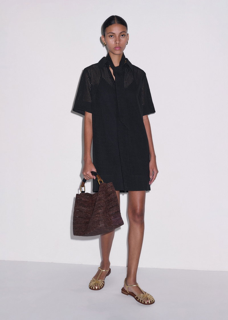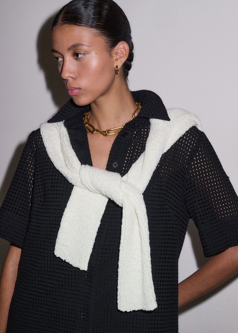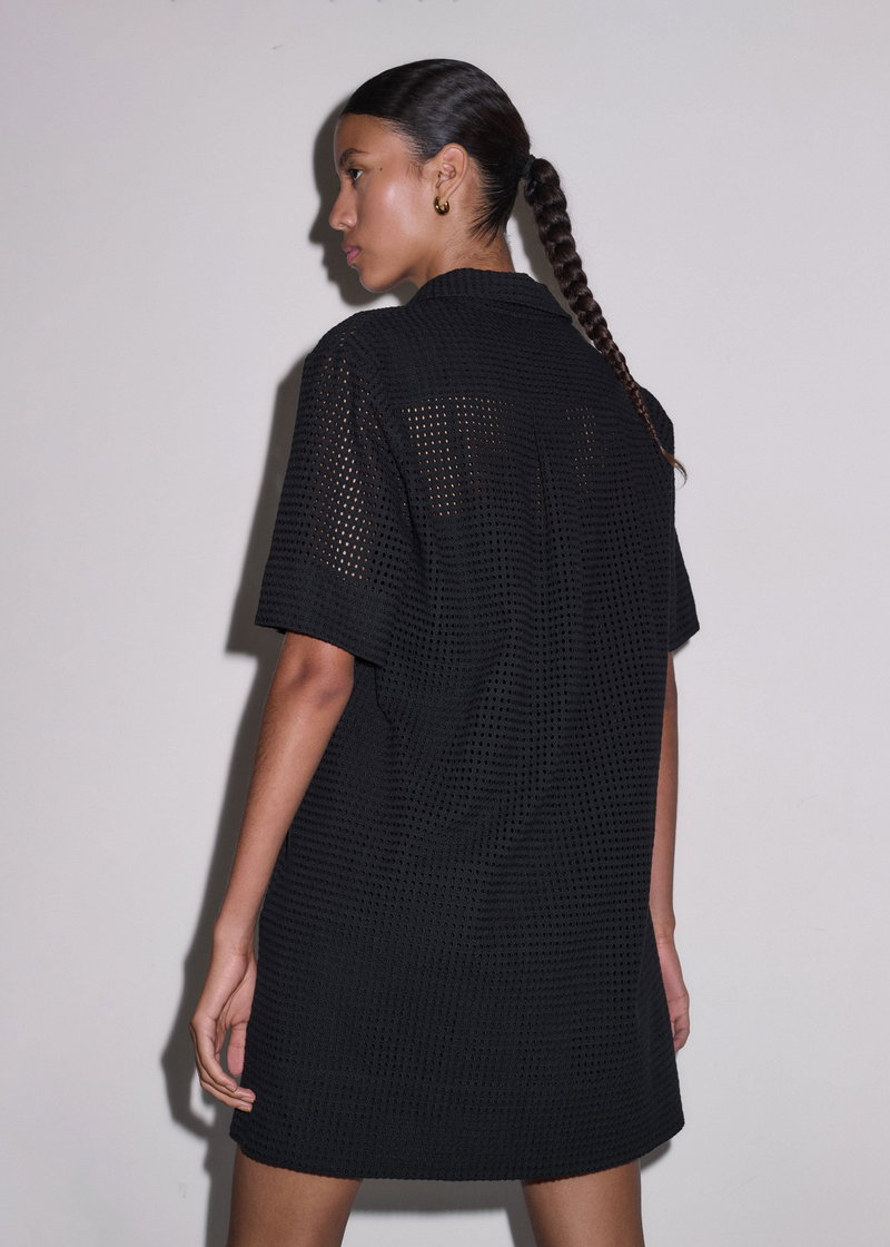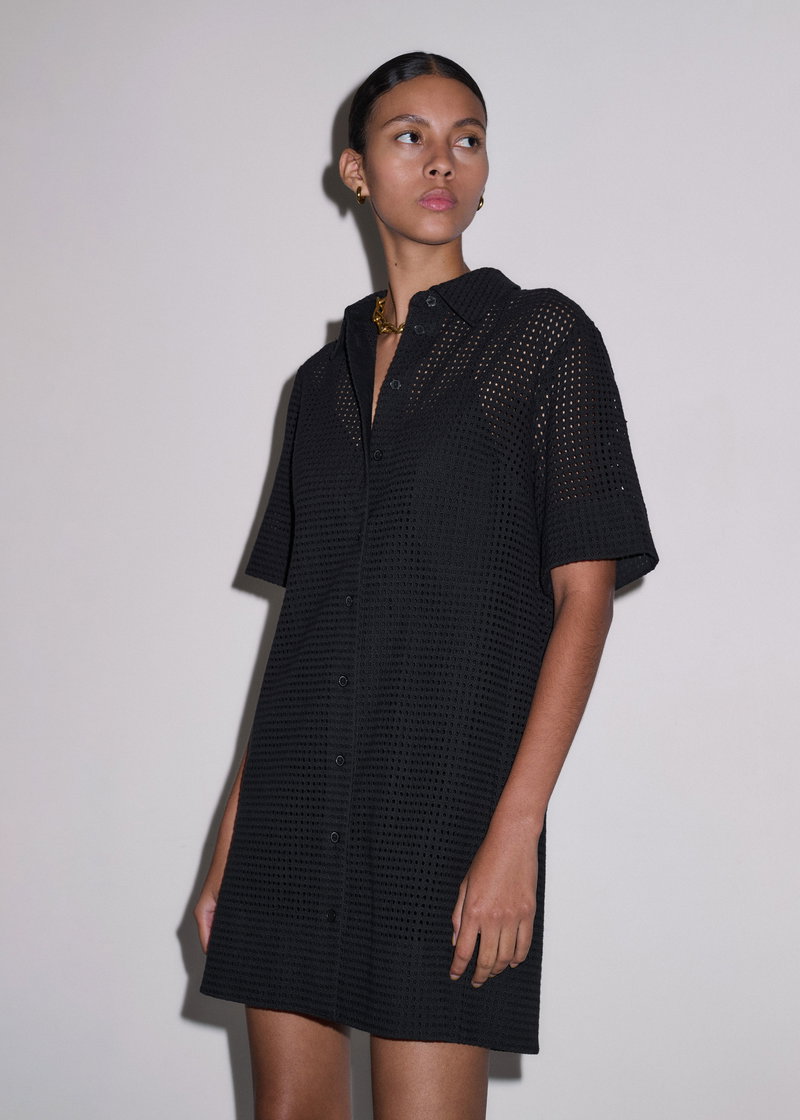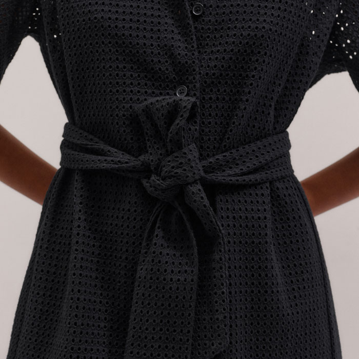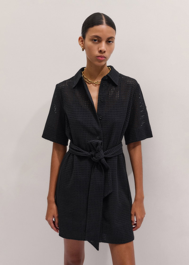 ME+EM's Black Broderie Anglaise Short Dress is crafted with a semi-sheer cotton-broderie mesh overlay.