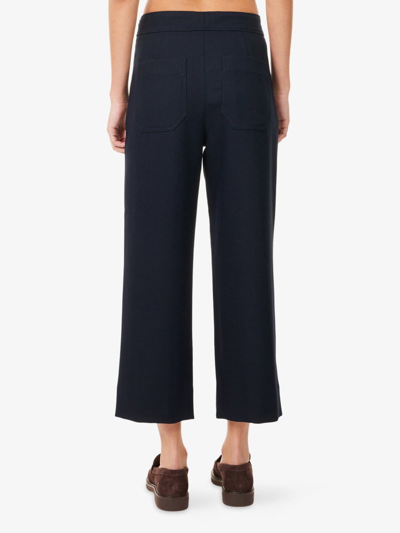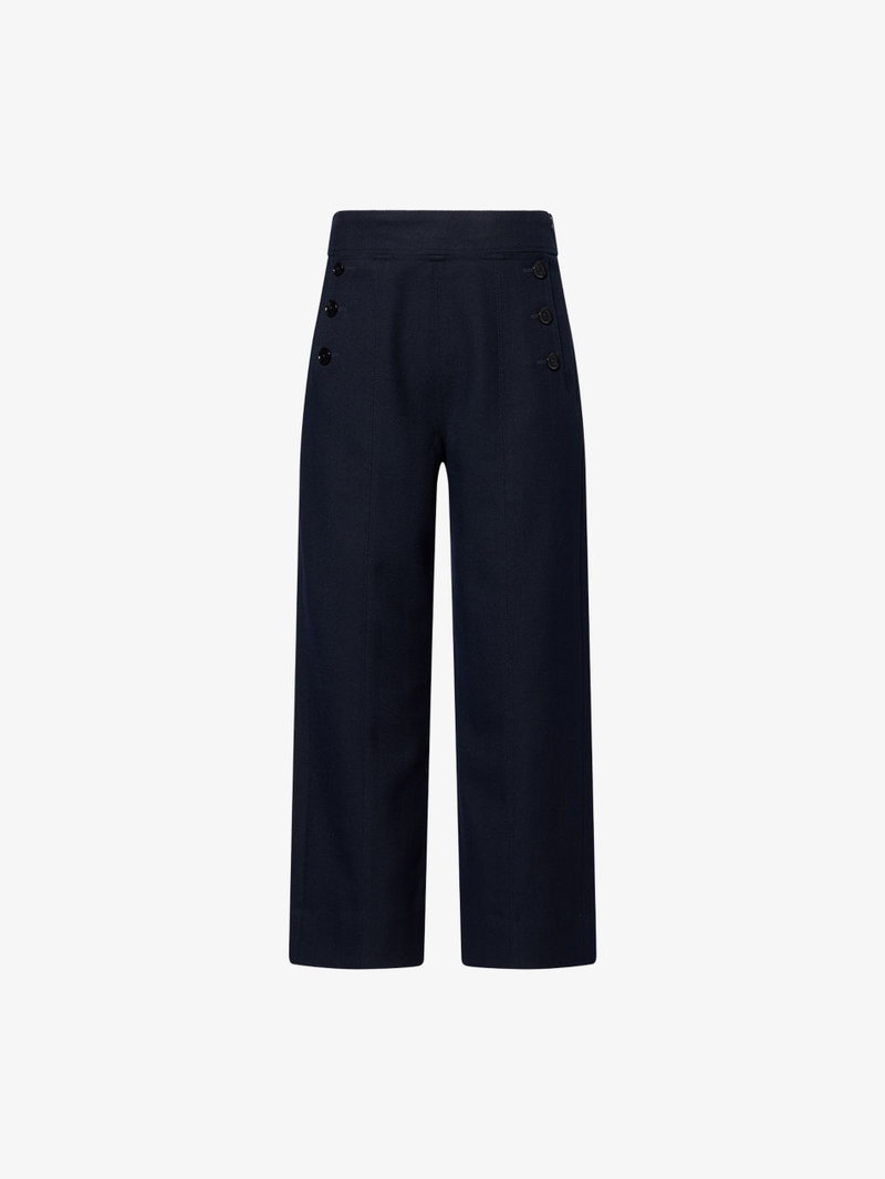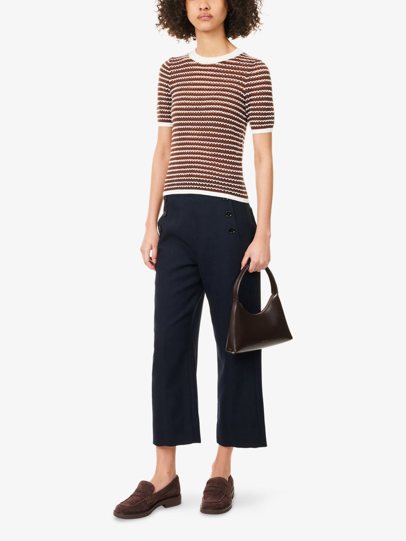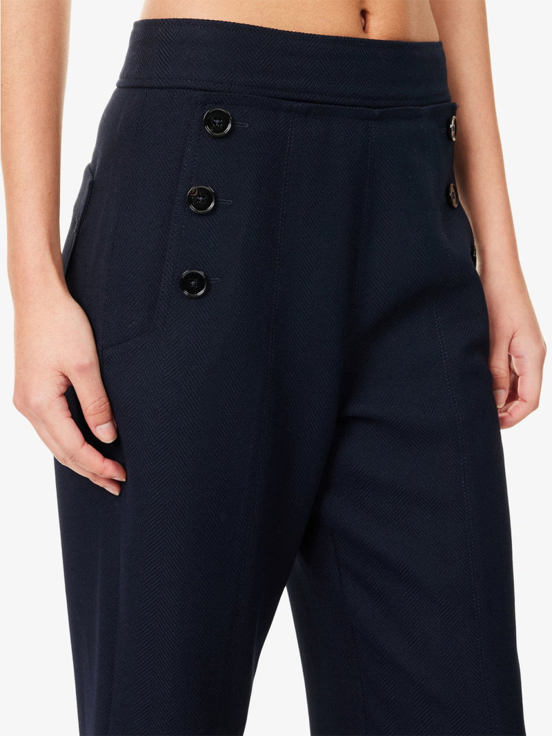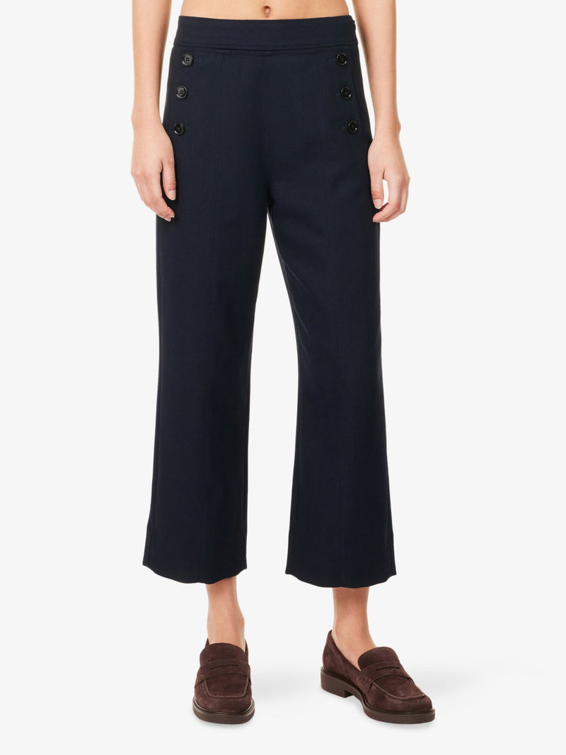 Button-Front Straight-Leg Cropped Woven Trousers
