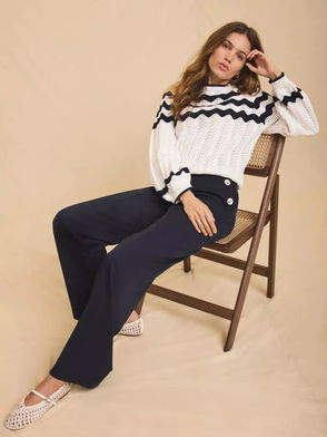 Founded by Clare Hornby in 2009, ME+EM offer what they like to call “intelligent clothes for now, this season and beyond”. Always flattering and timeless, their pieces are created to look good when styled together, and that includes their essential Breton tops, shirts and palazzo trousers.