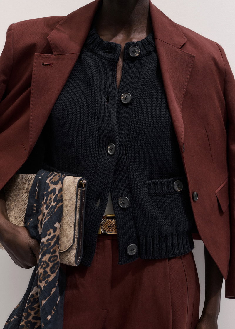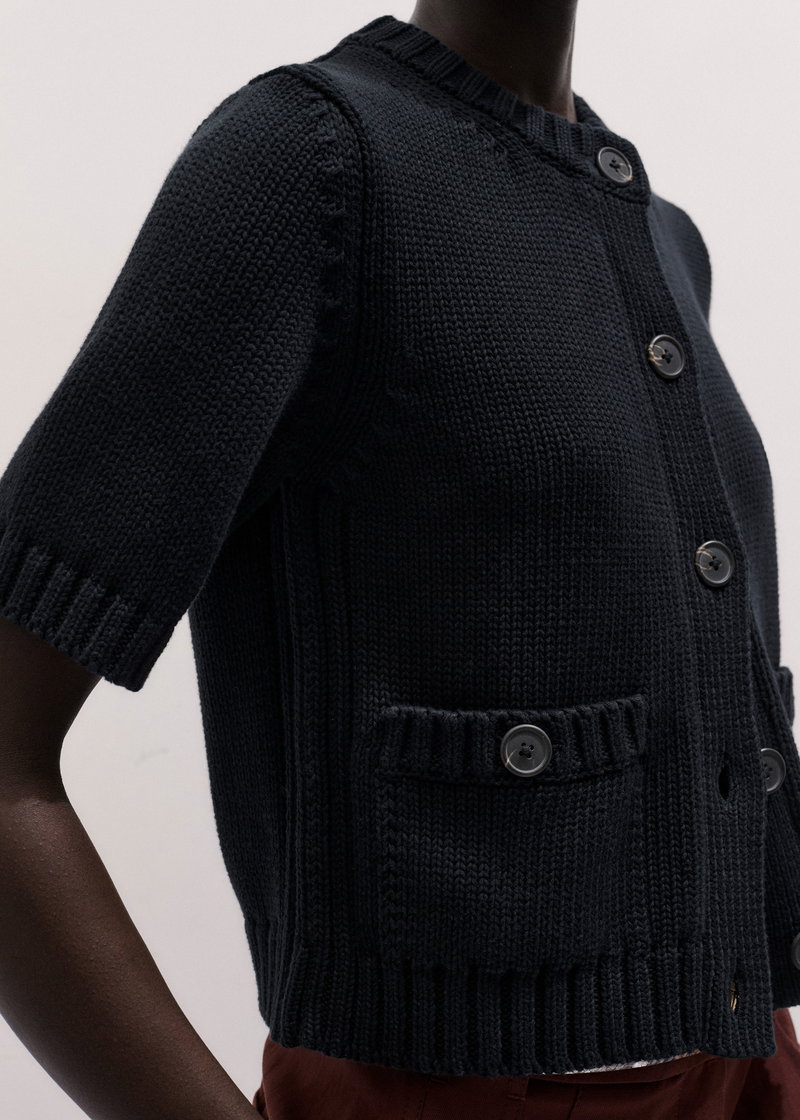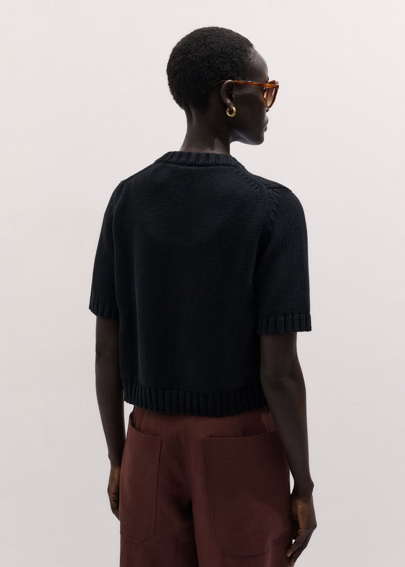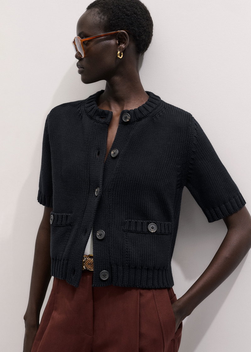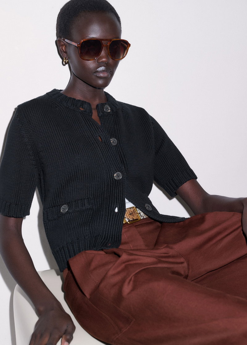 ME+EM's Black Straight Knit Cardigan is crafted from a chunky organic cotton with a naturally breathable finish for transeasonal versatility.