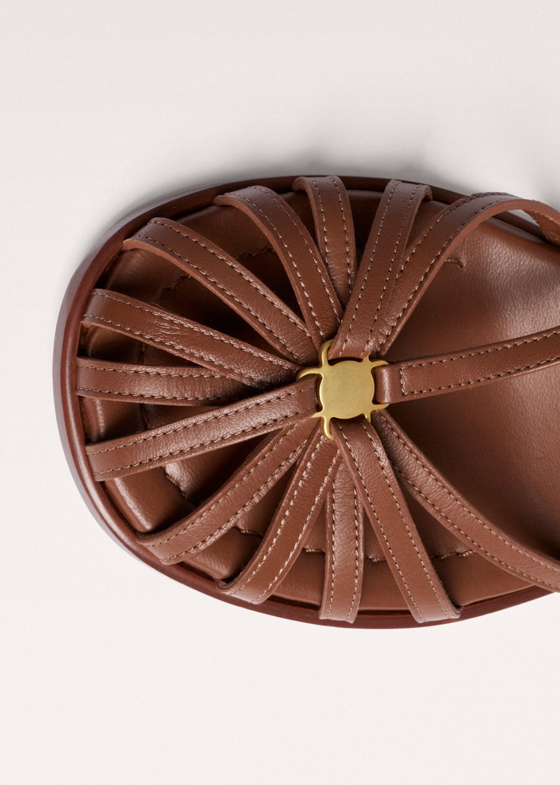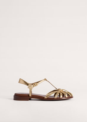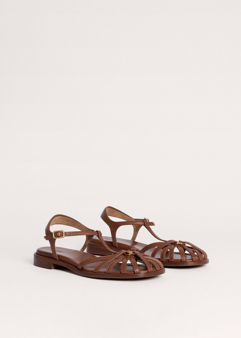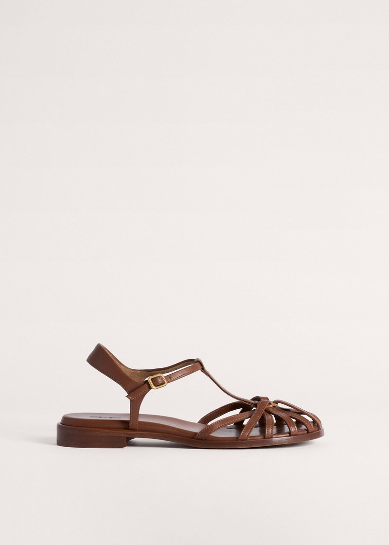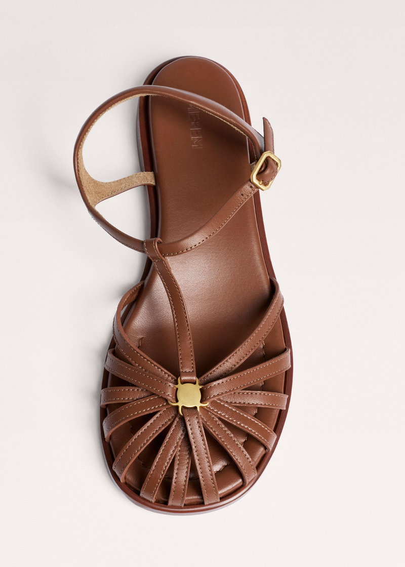 ME+EM's Brown Caged T-Bar Sandal has a caged, open design which ensures all-day breathability.