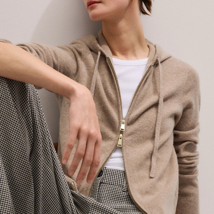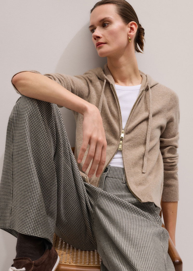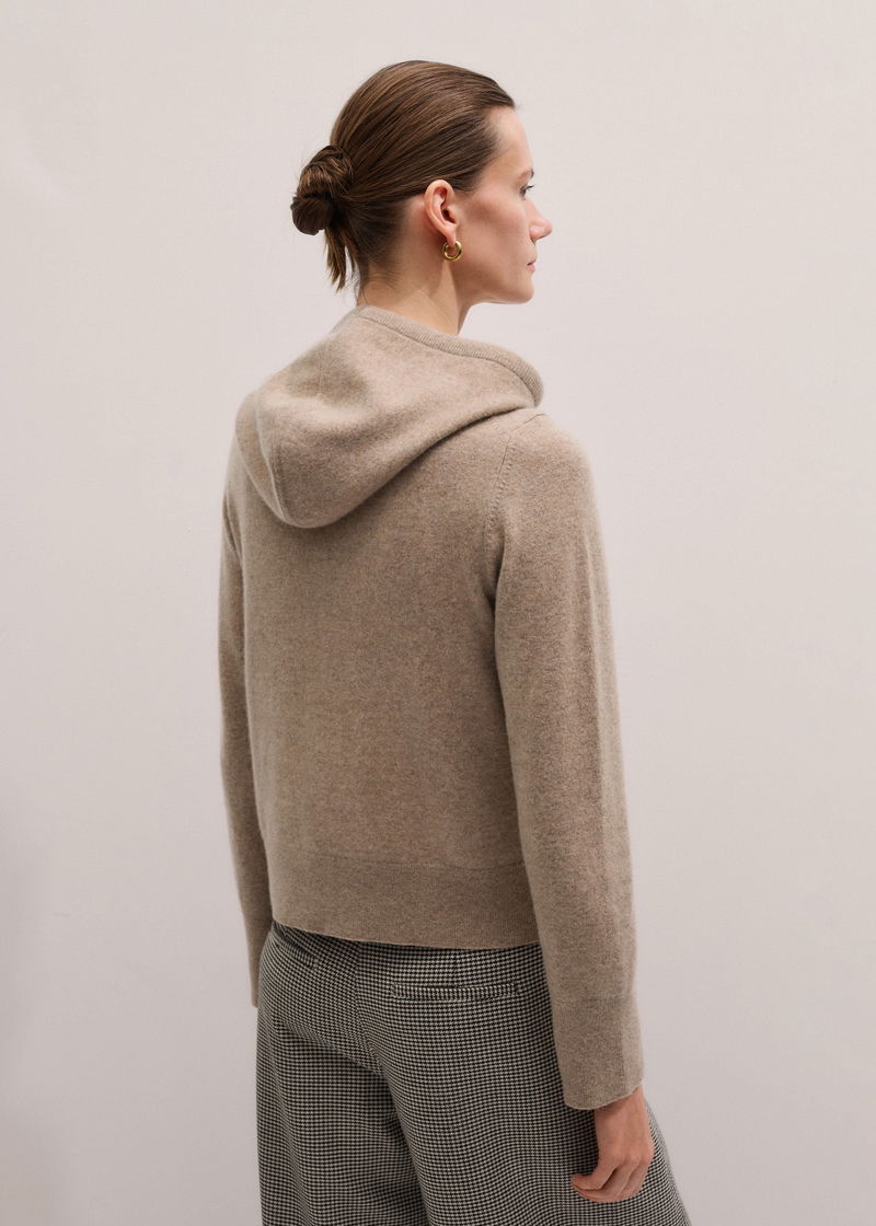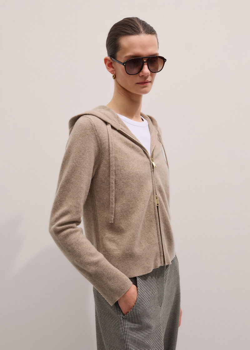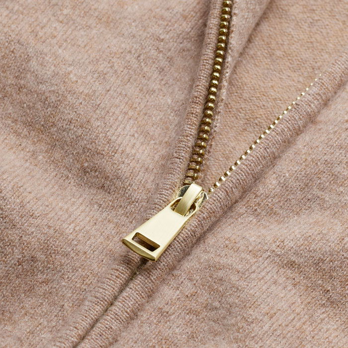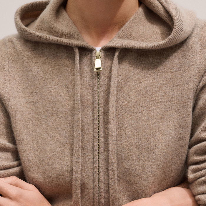 Cashmere Two Way Zip Straight Hoody Hazelnut Melange