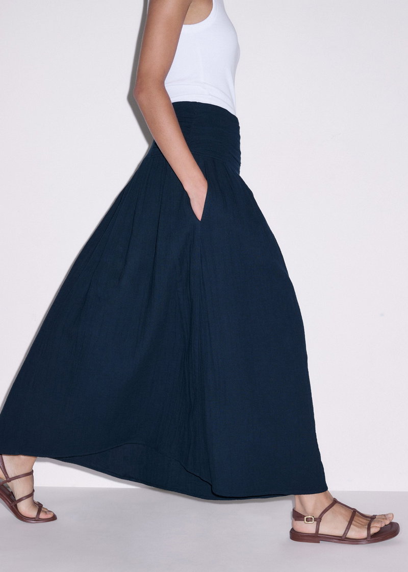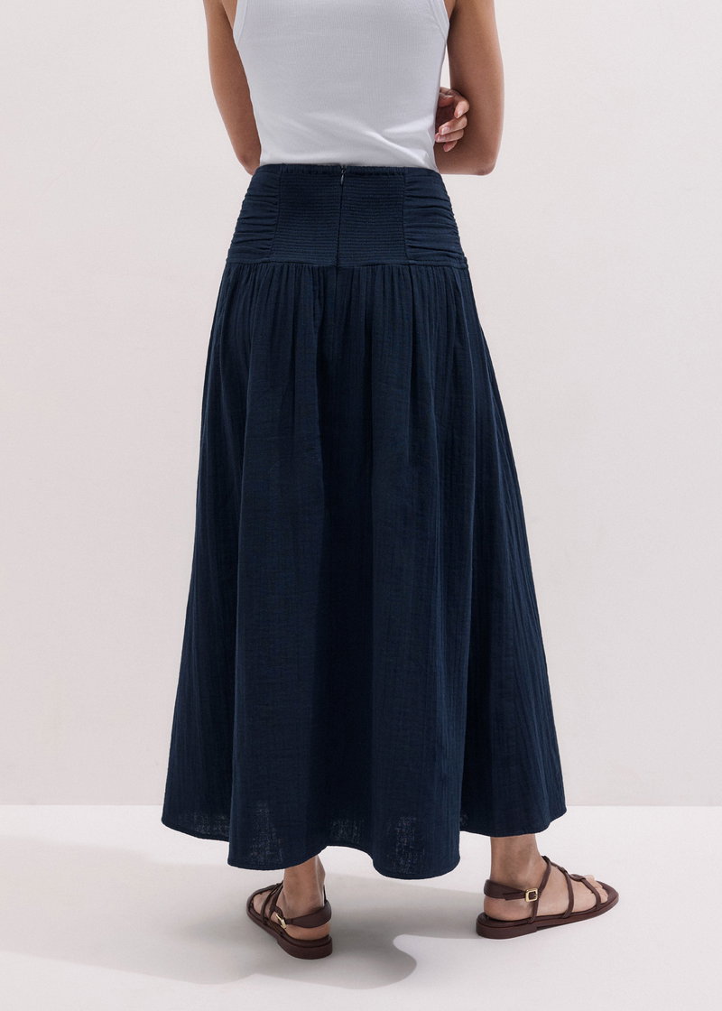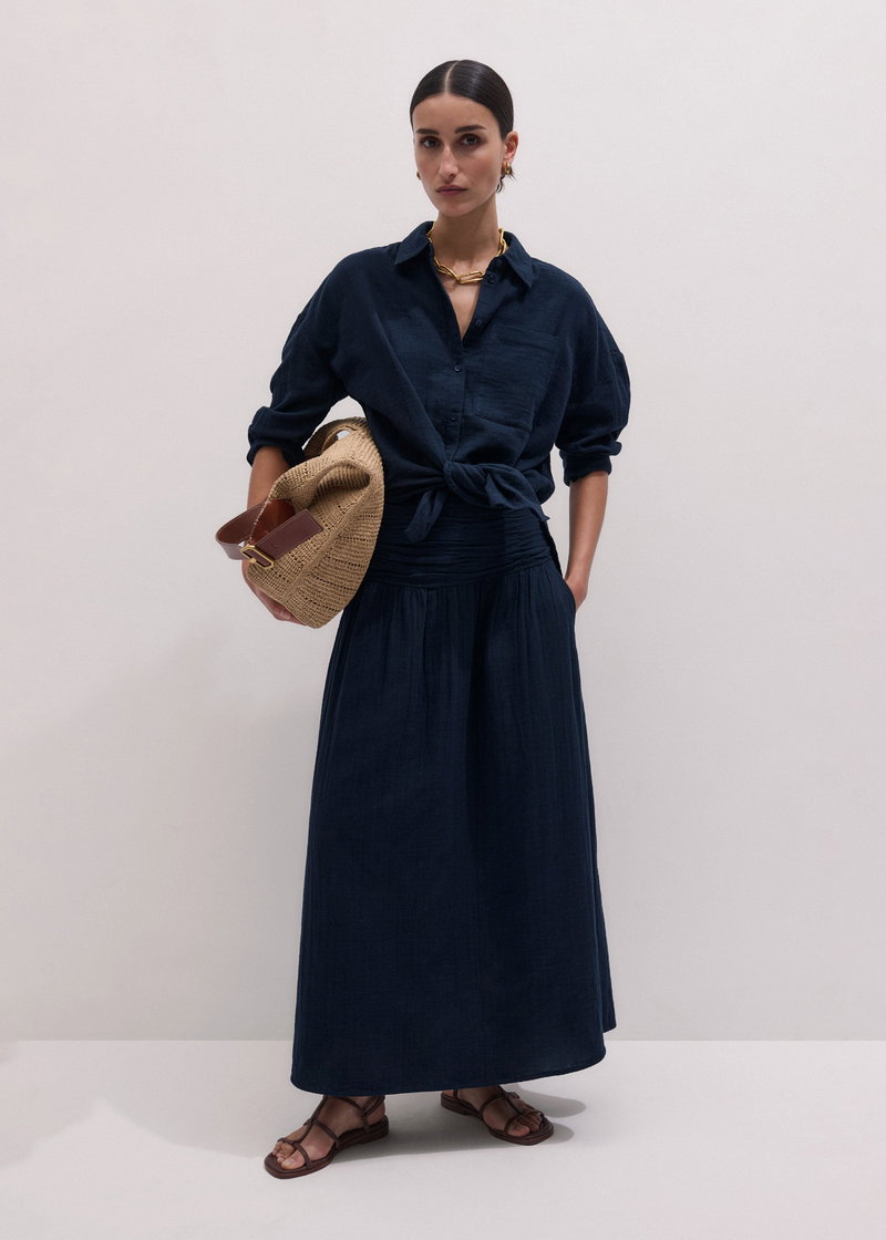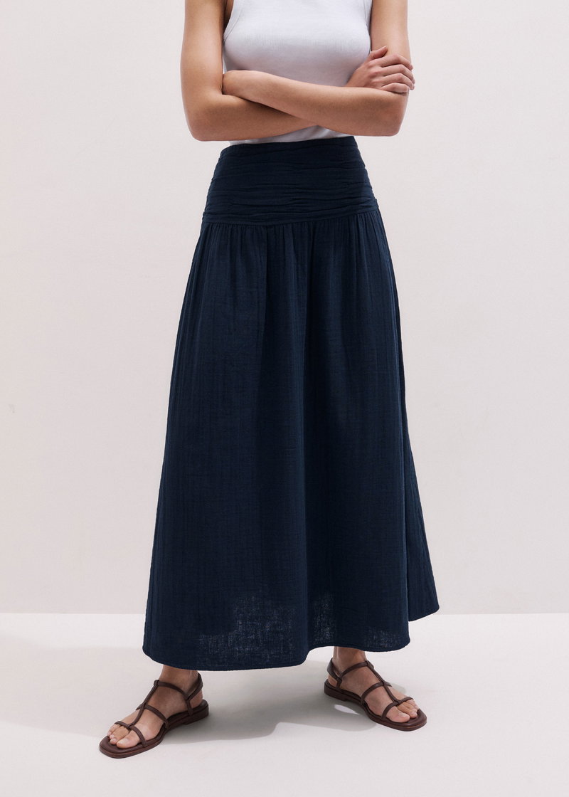 ME+EM's Navy Cheesecloth Relaxed Maxi Skirt is made from lightweight, breathable cotton cheesecloth for all-day comfort.
