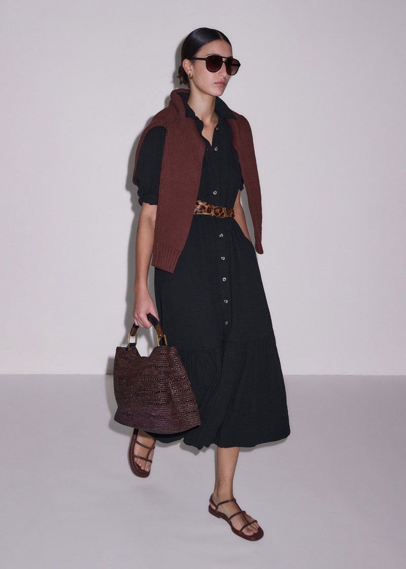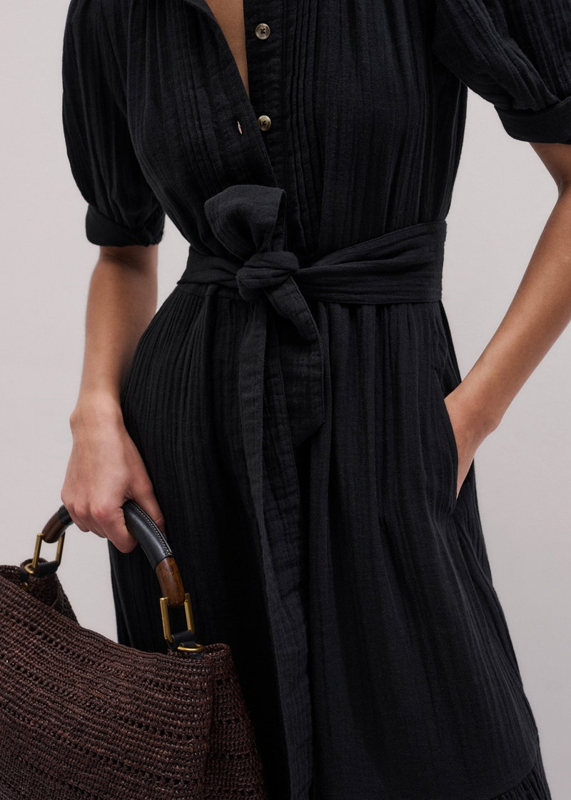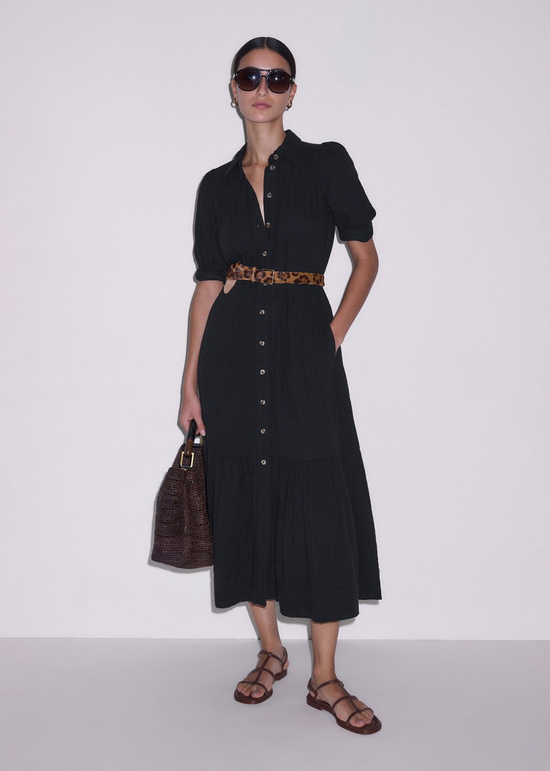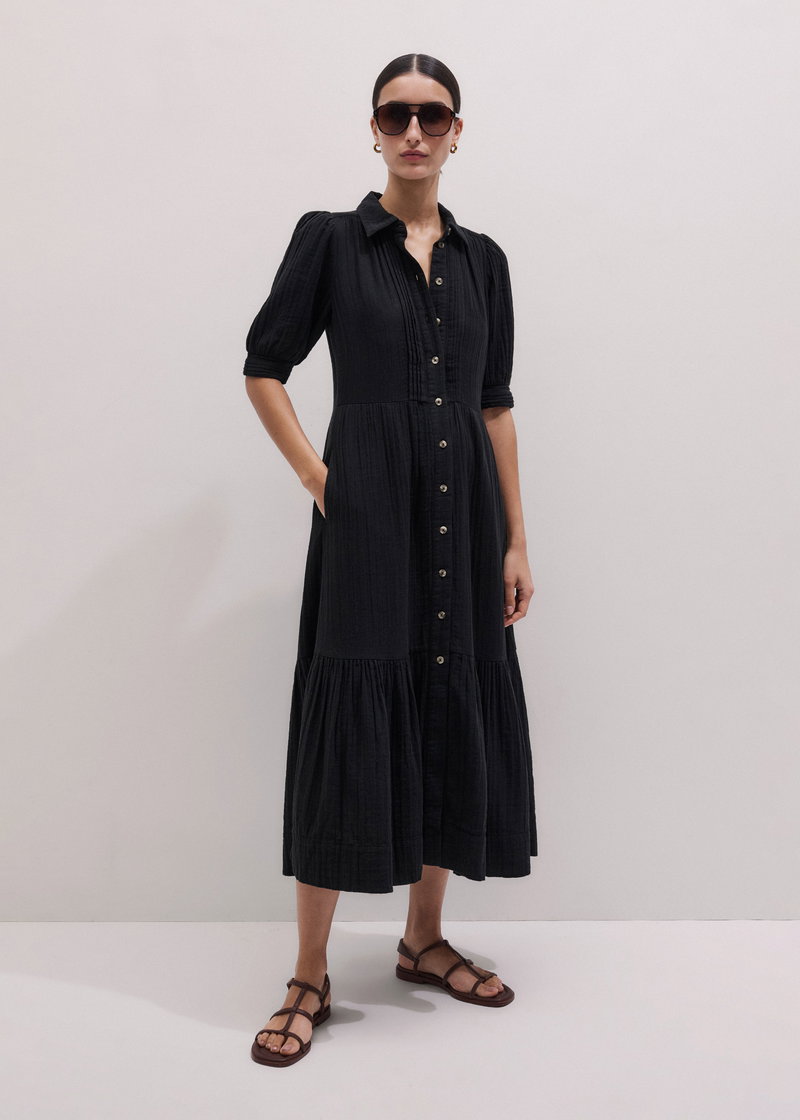 ME+EM's Black Cheesecloth Midi Shirt is designed with a button-down front for customisable coverage.