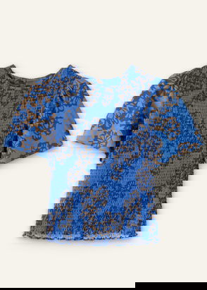 Cheesecloth Tulip Print Shirred Zip Top Soft White/Sherbet Lilac