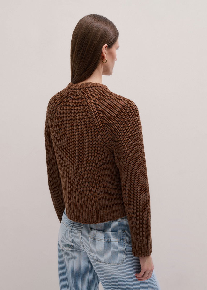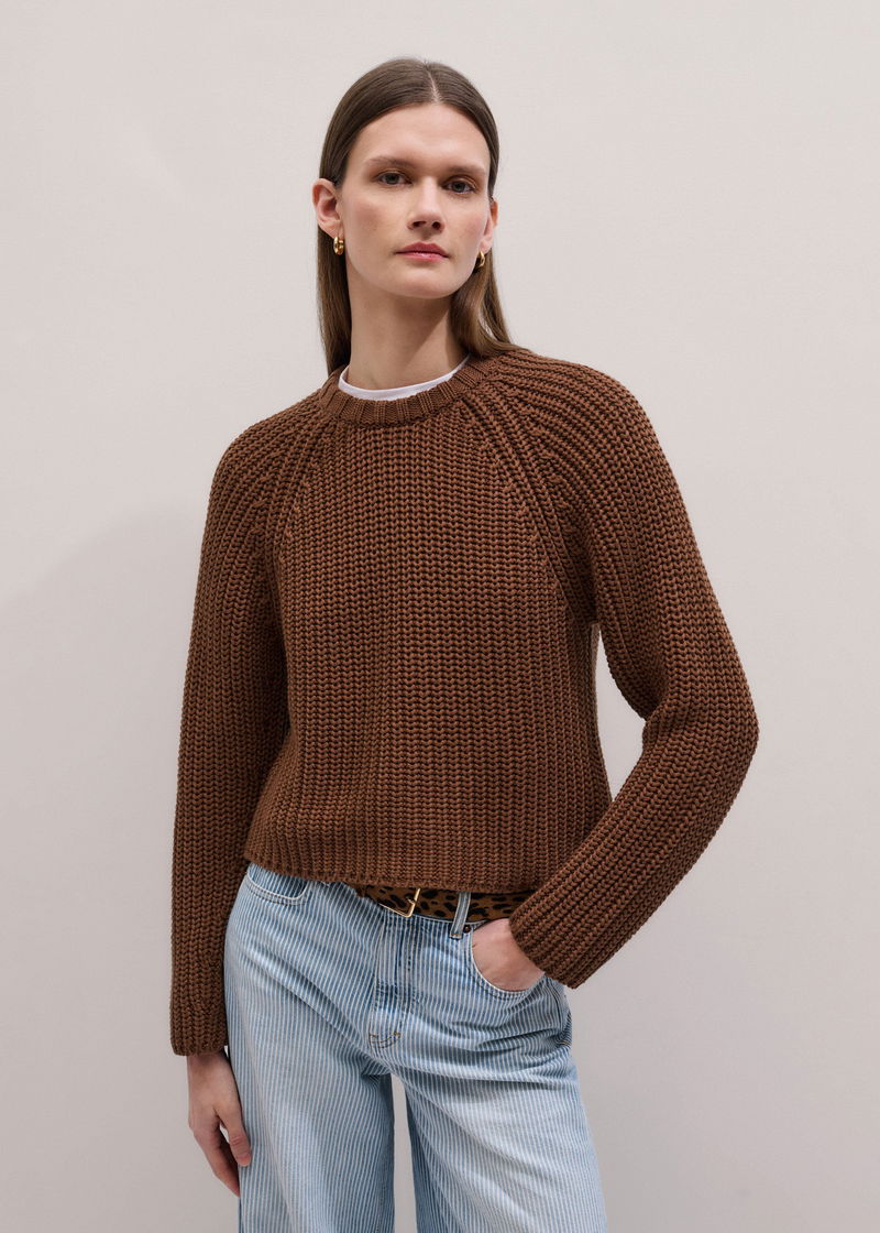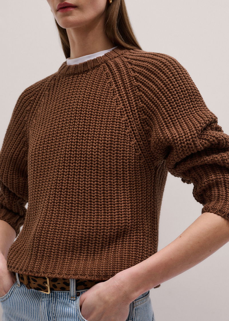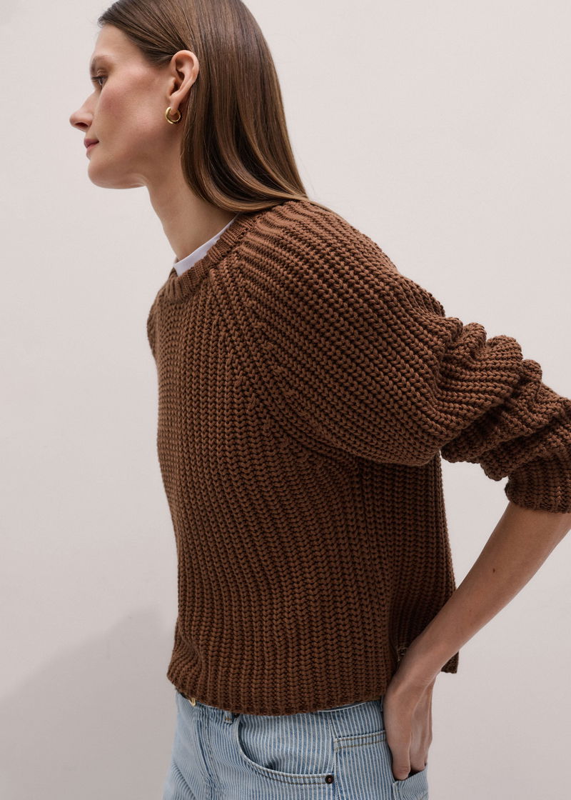 ME+EM's Brown Chunky Cotton Raglan Jumper is designed with raglan shoulder seams, which create a narrowing effect for a flattering shape.