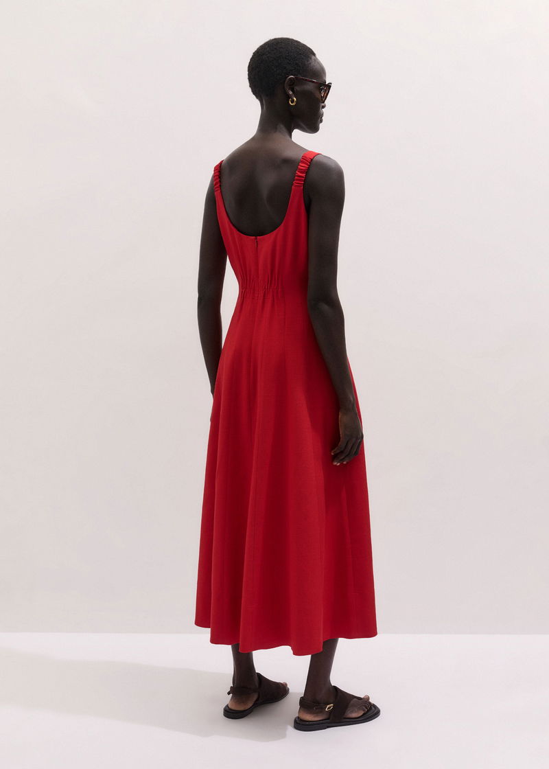 ME+EM's Red Contour Seam Fit + Flare Maxi Dress has a slightly weightier feel that skims the figure, making it the perfect solution for summer events.