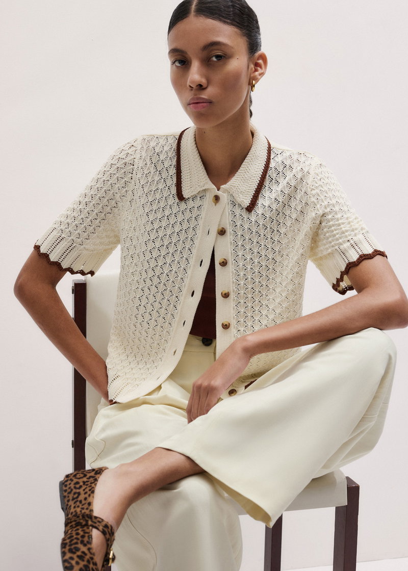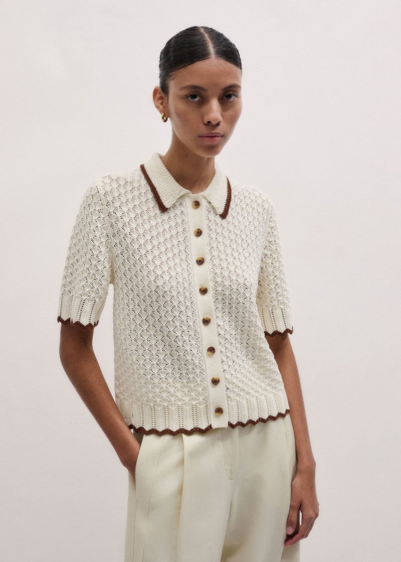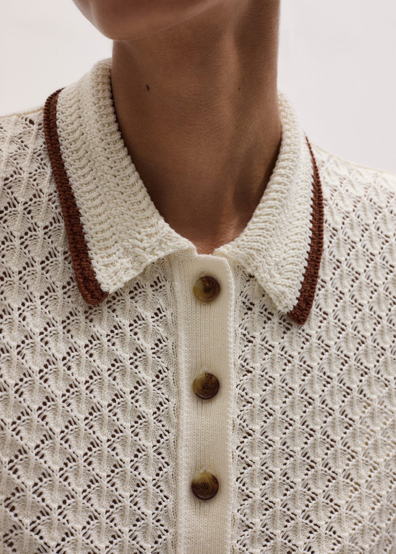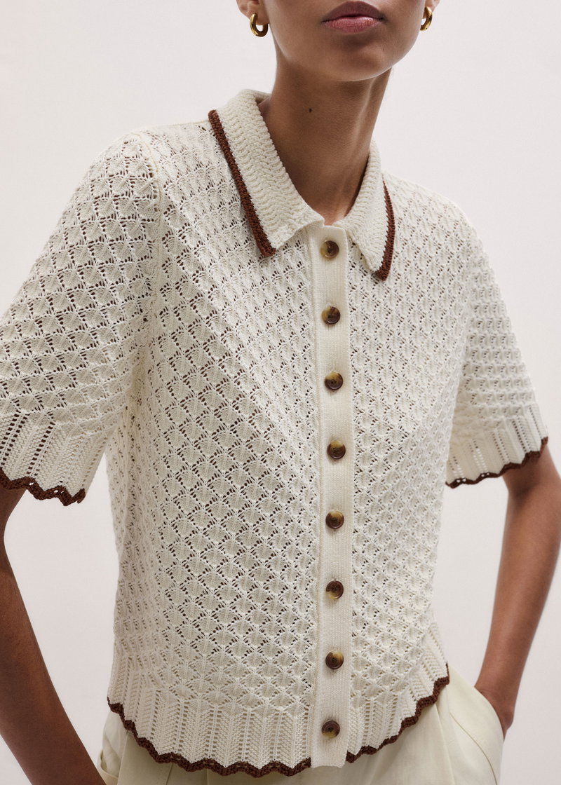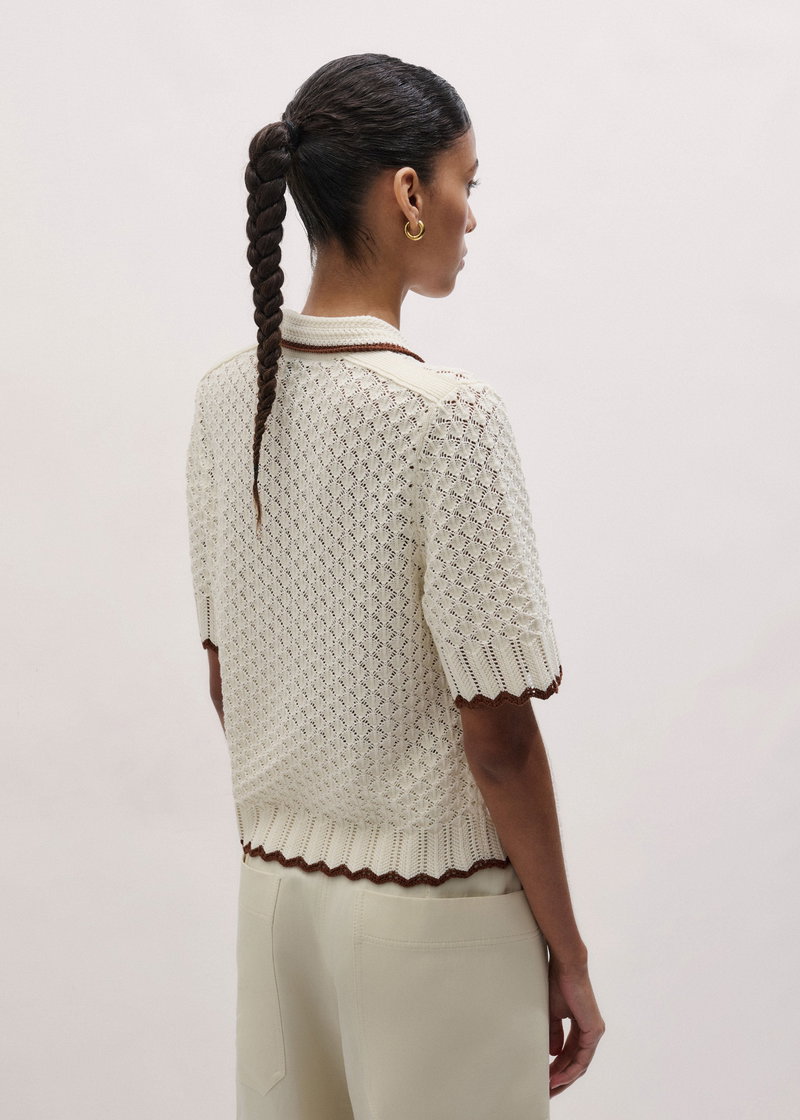 ME+EM's Cream Straight Knit Tee is crafted from cotton knitted into a delicately detailed crochet stitch for a tactile edge.