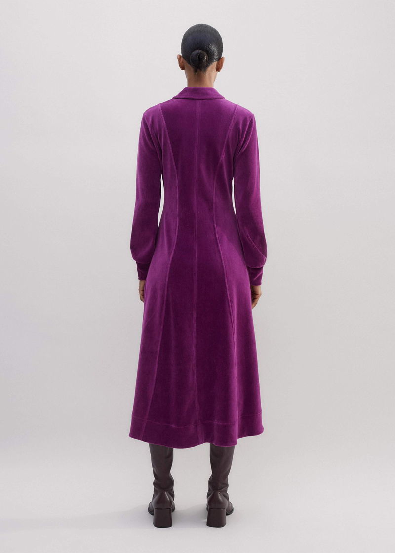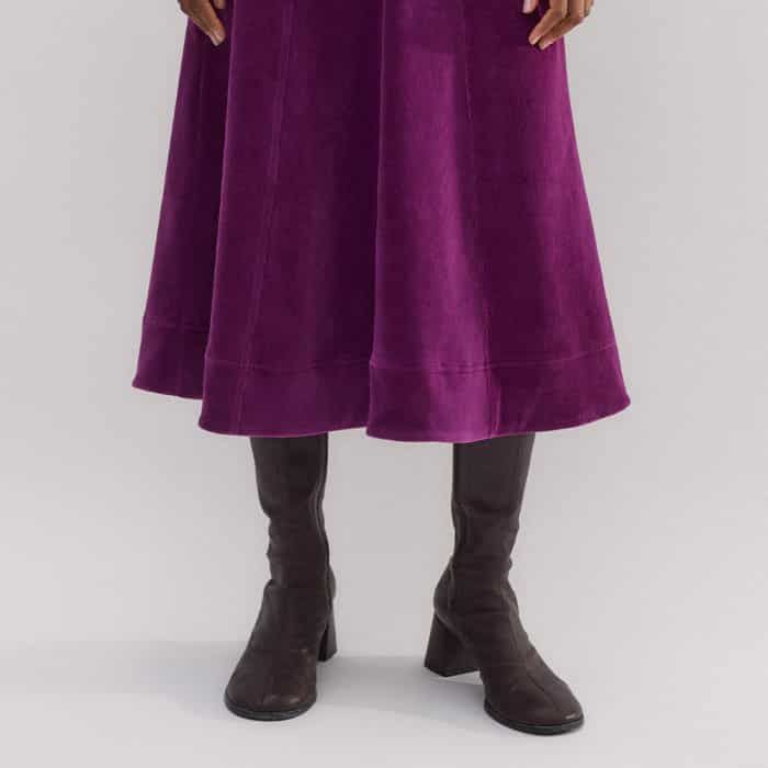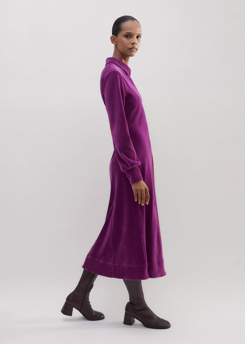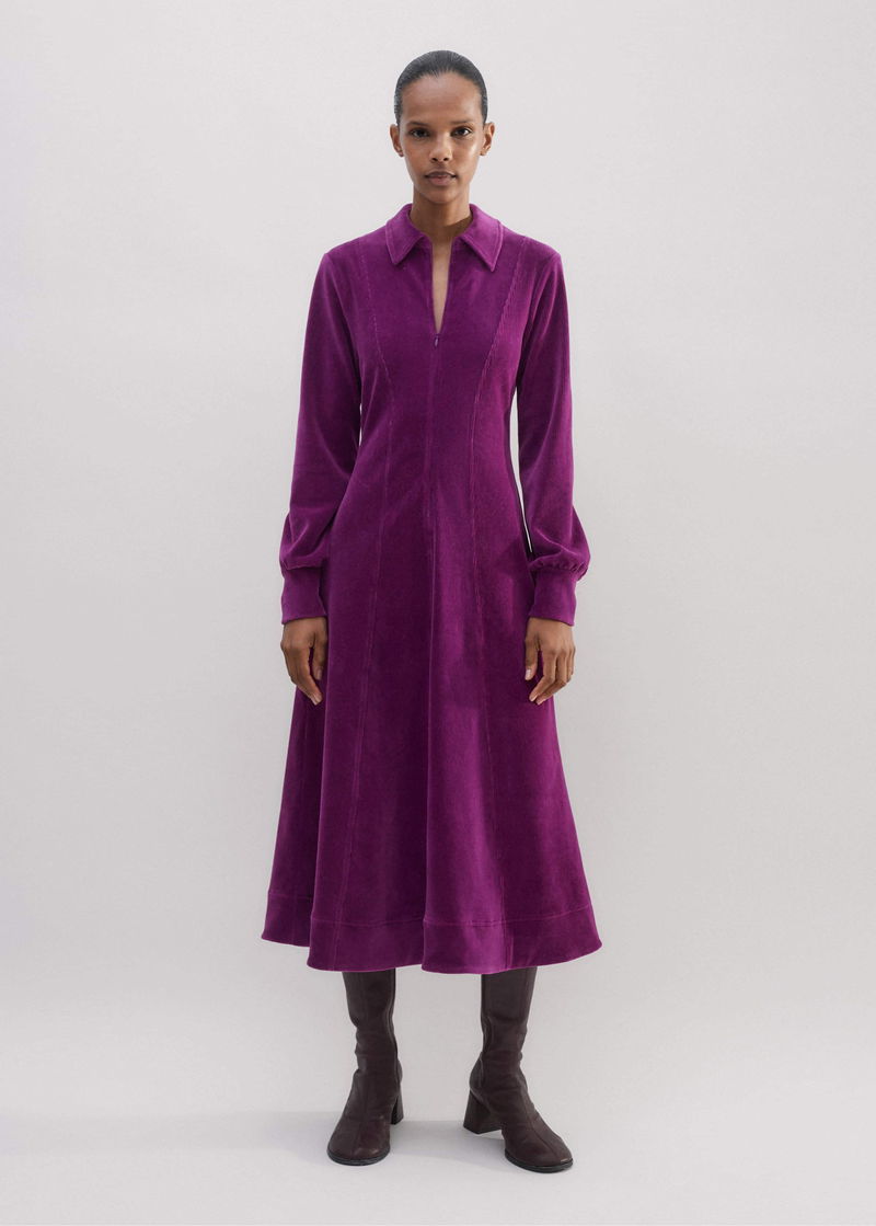 Cord Velour Fit And Flare Midi Dress Deep Winter Iris