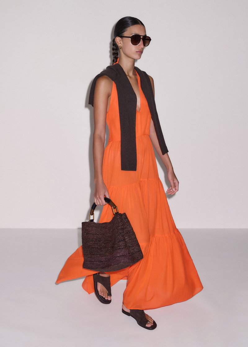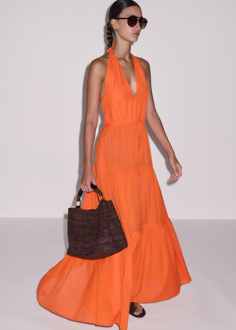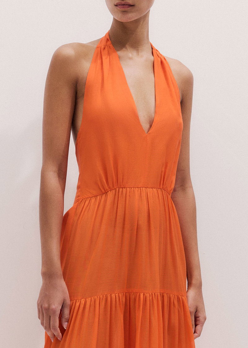 Cotton Voile Tiered Maxi Dress Sunny Orange