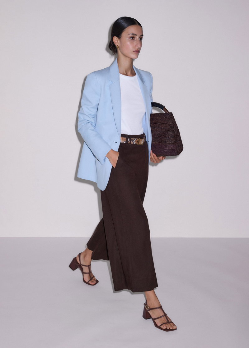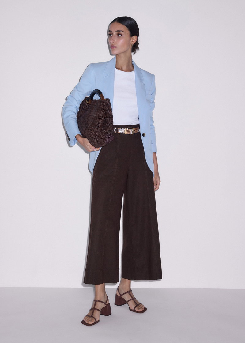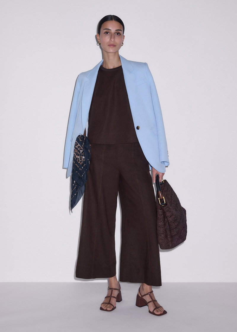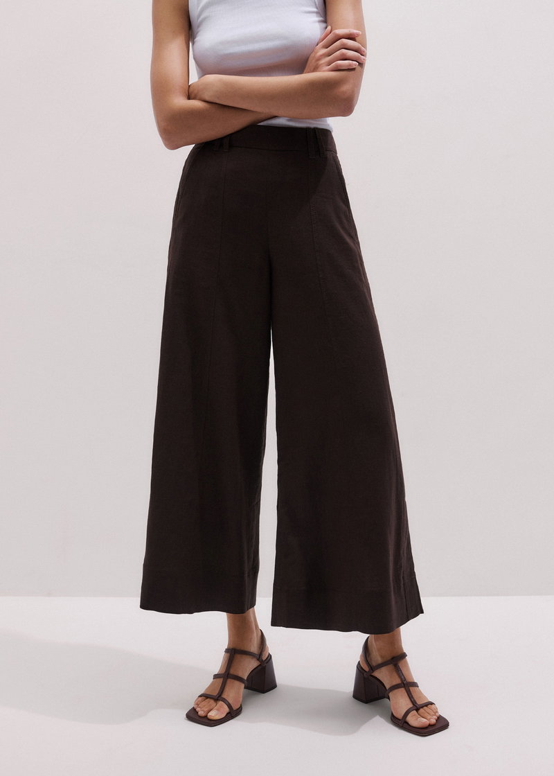 ME+EM's Brown Crop Wide-Leg Trouser is crafted from our Crease-Less Linen, which includes viscose to retain a smoother, more polished look.