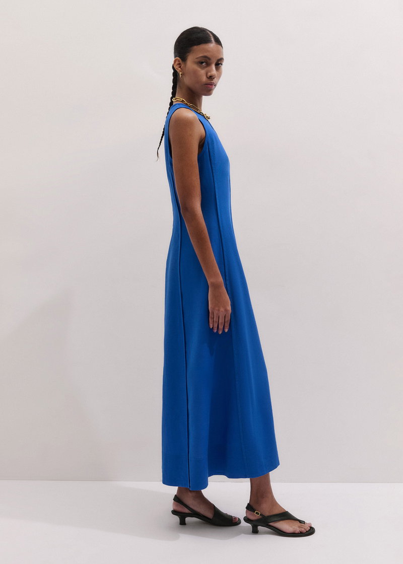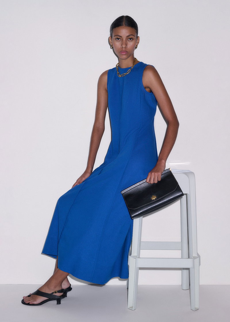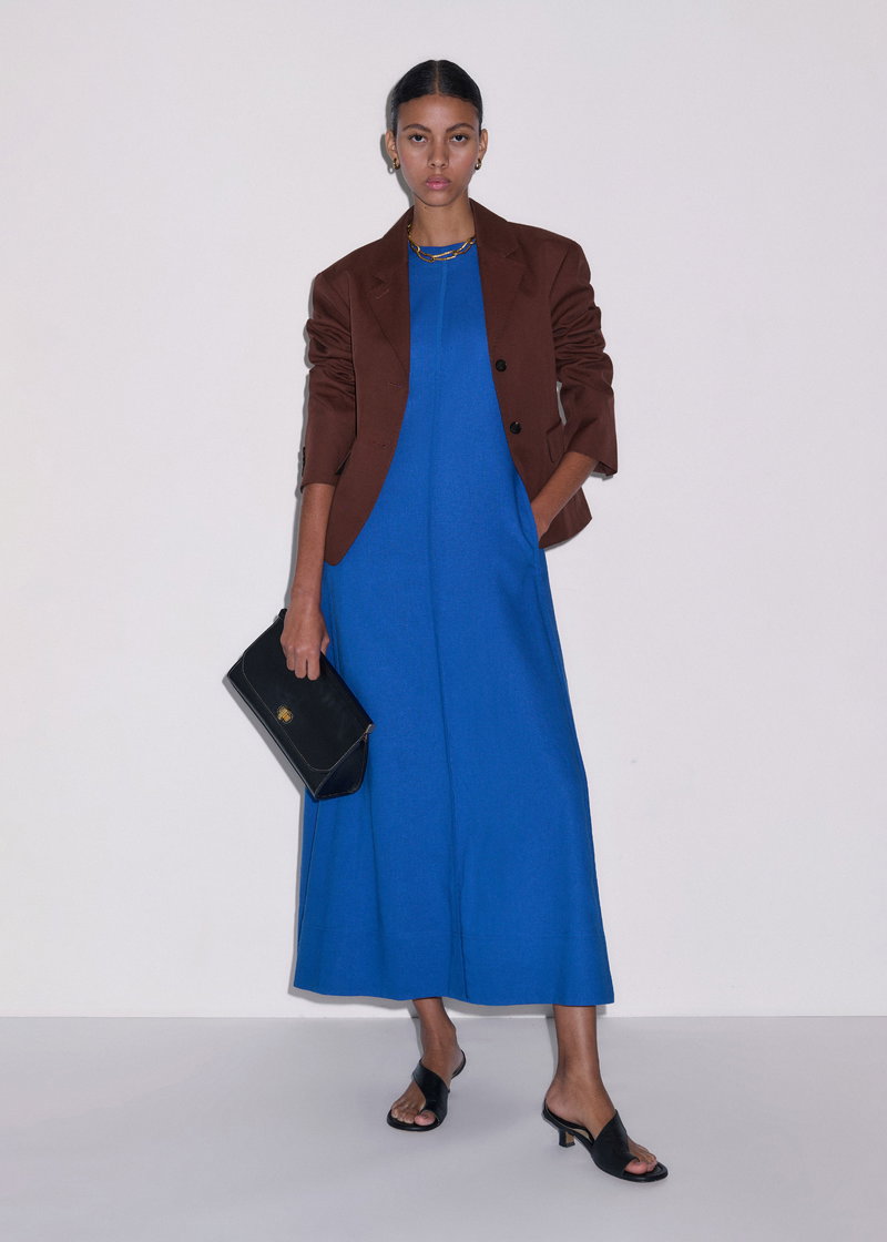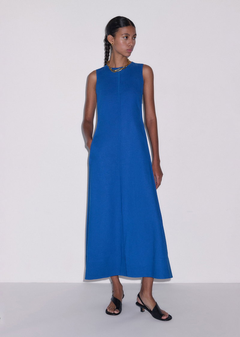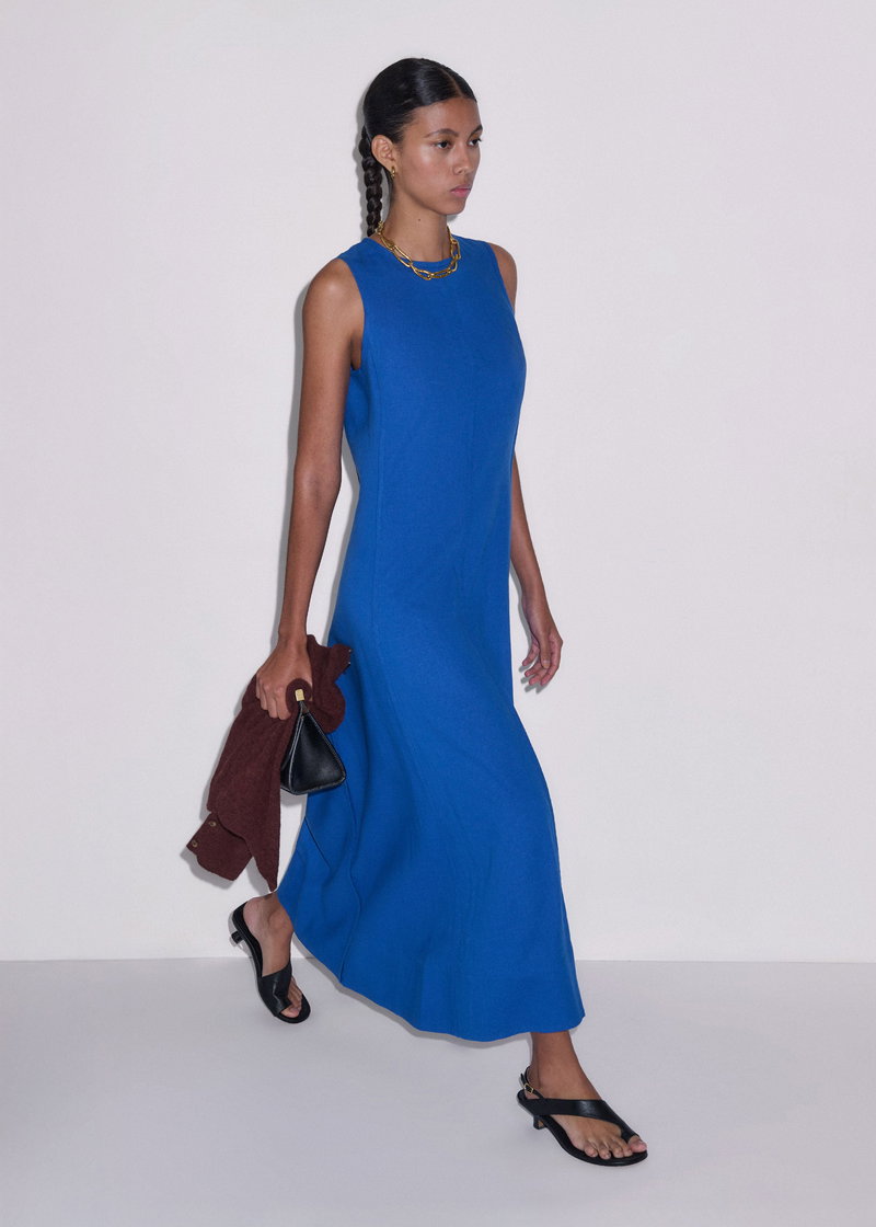 ME+EM's Blue Crease-Less Linen Effortless Maxi Dress is crafted from an innovative linen blend designed to crease less for a sunrise-to-sunset polish.