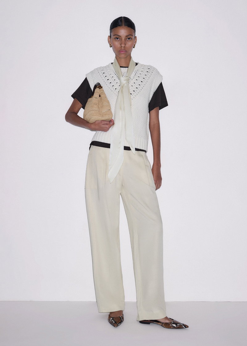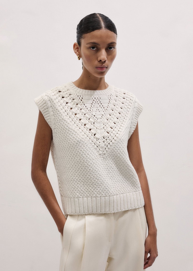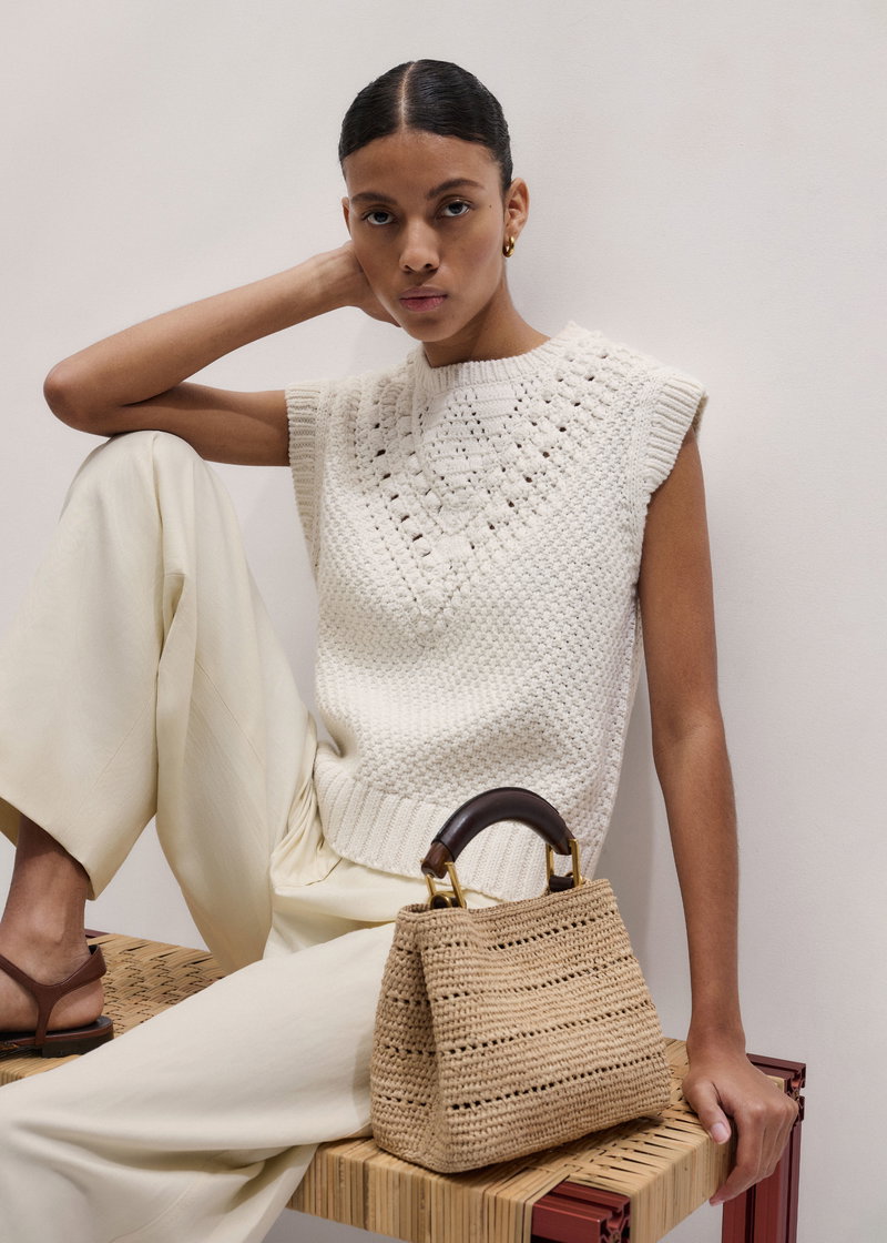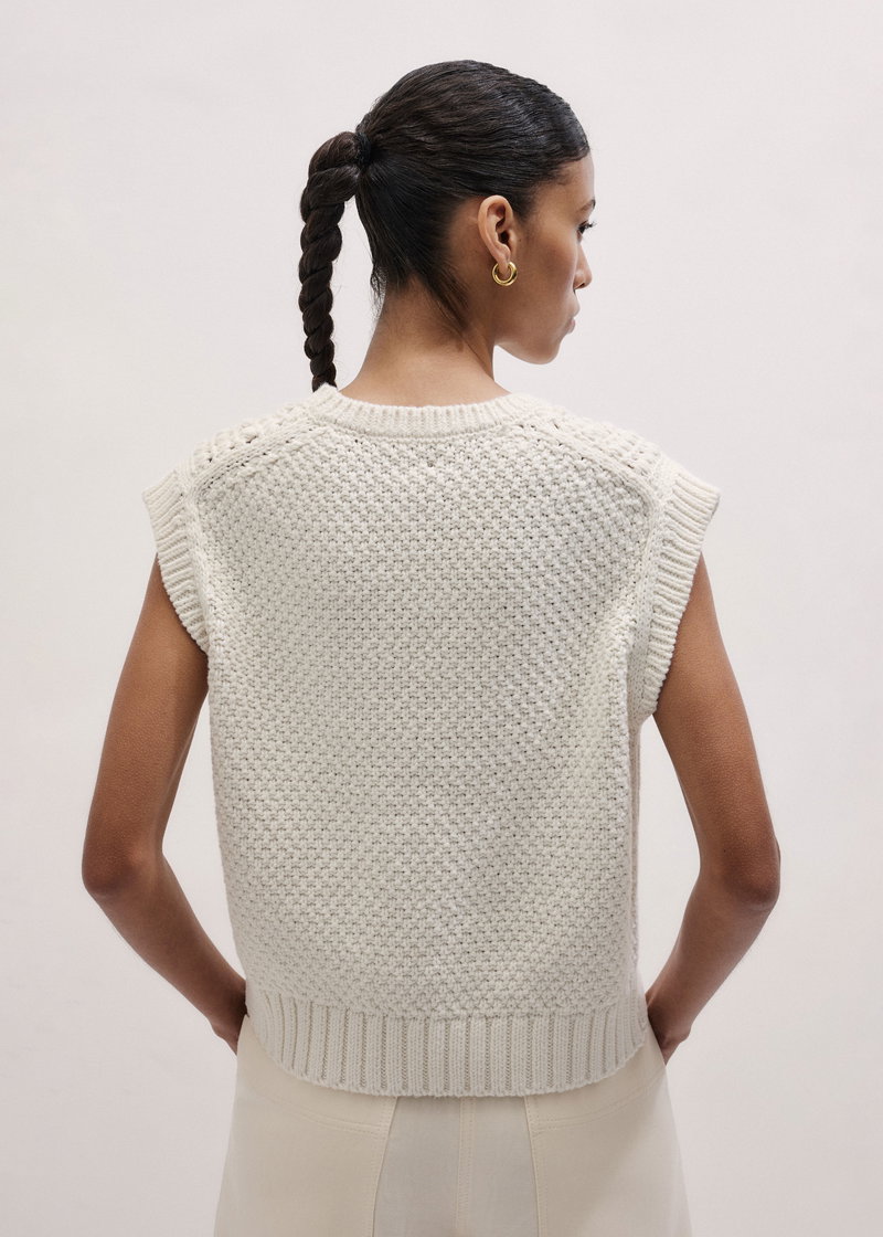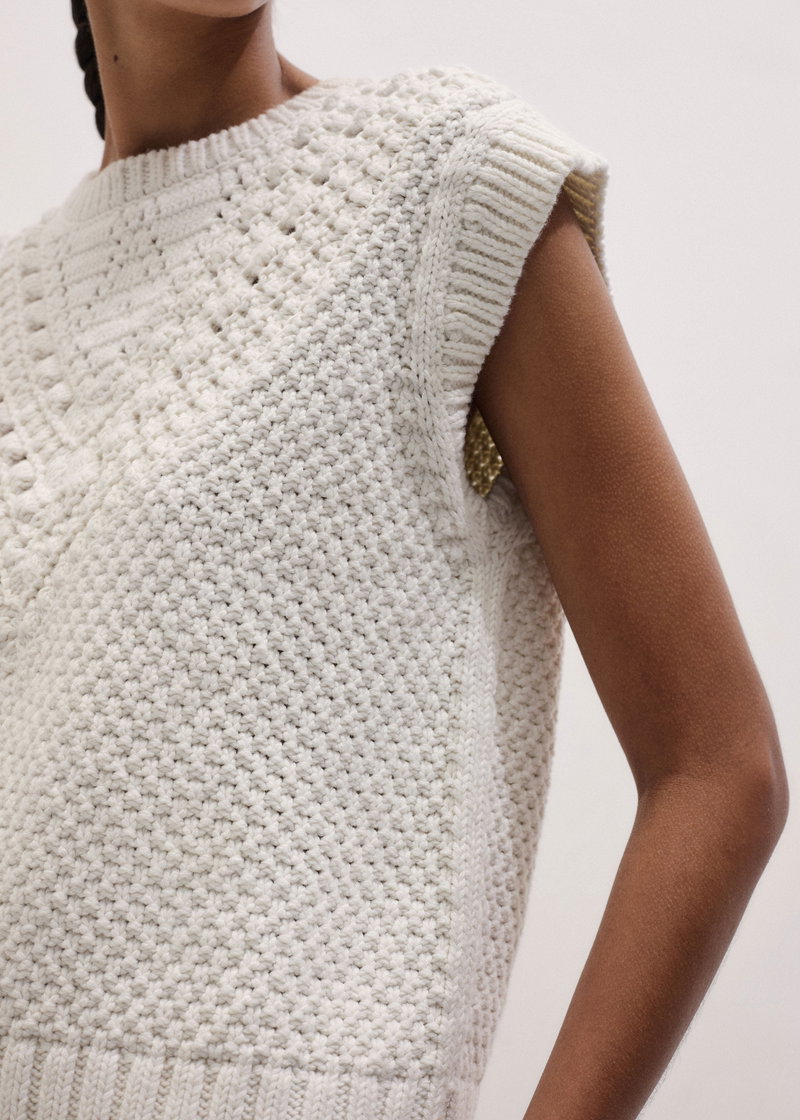ME+EM's Cream Relaxed Knit Vest is crafted from a blend of organic cotton and merino wool in a textured stitch.