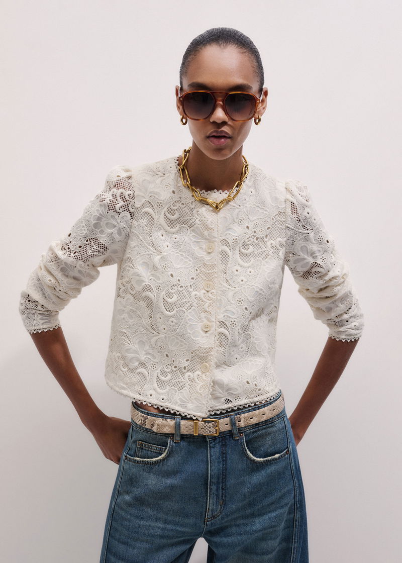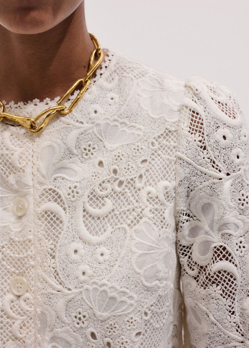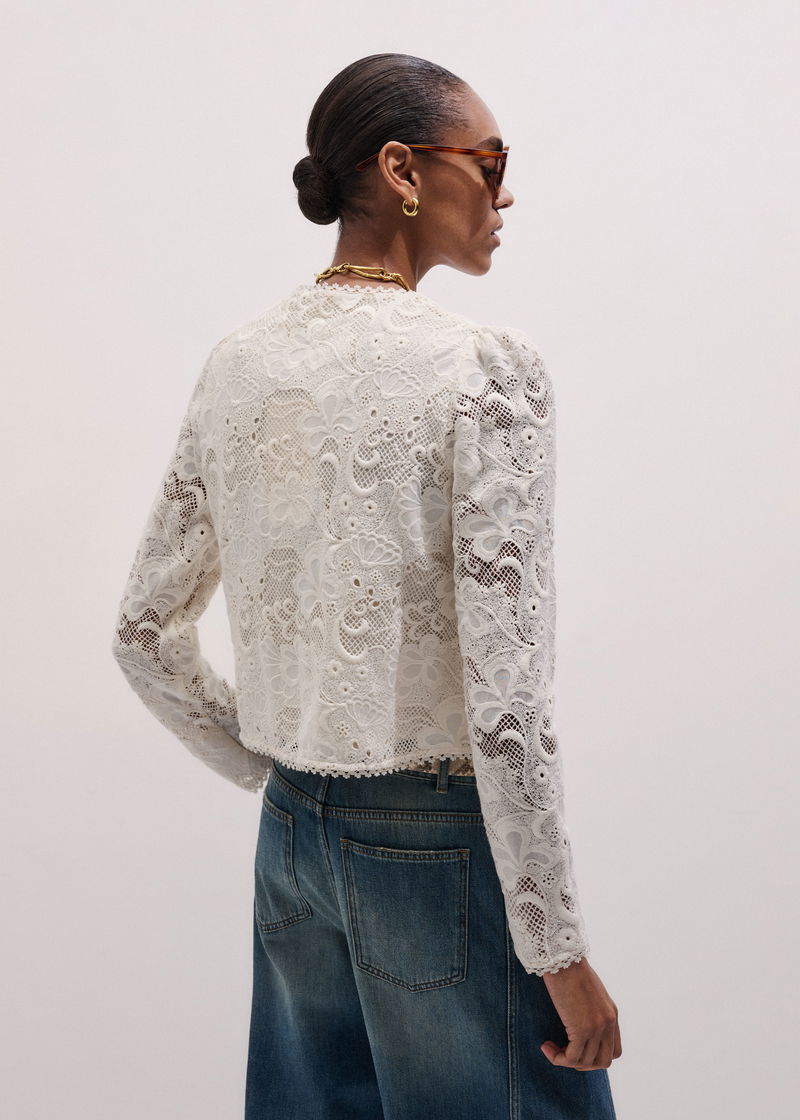 ME+EM's Cream Delicate Lace Jacket Blouse sits seamlessly under blazers and coats to effortlessly introduce a delicate new texture to your look.