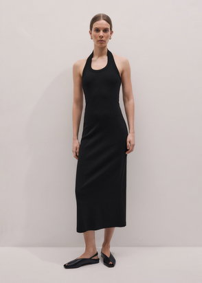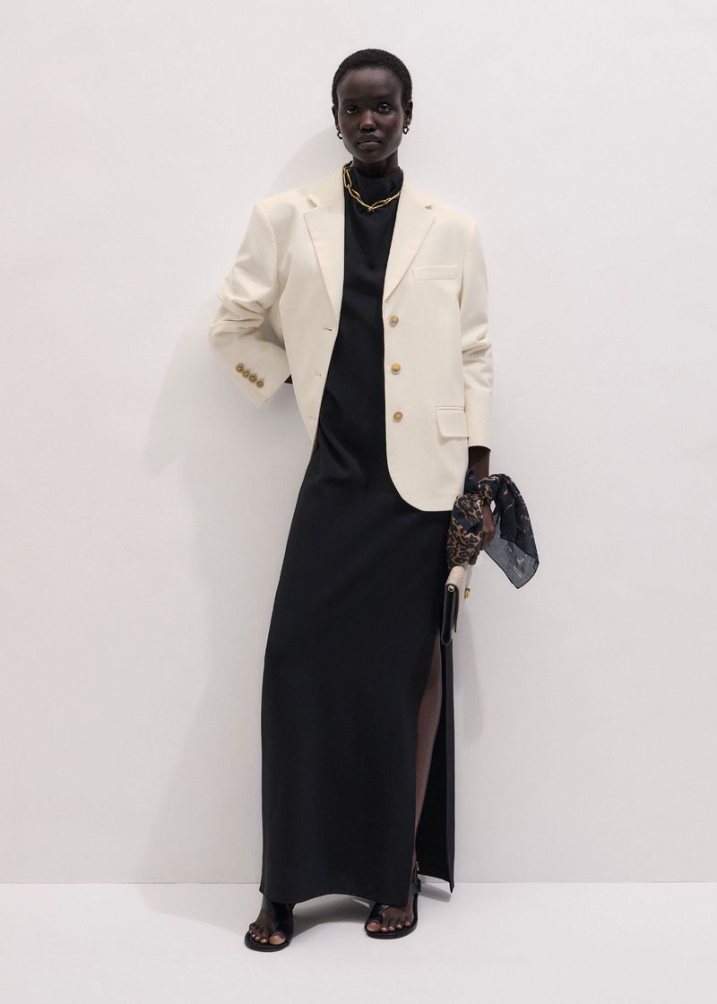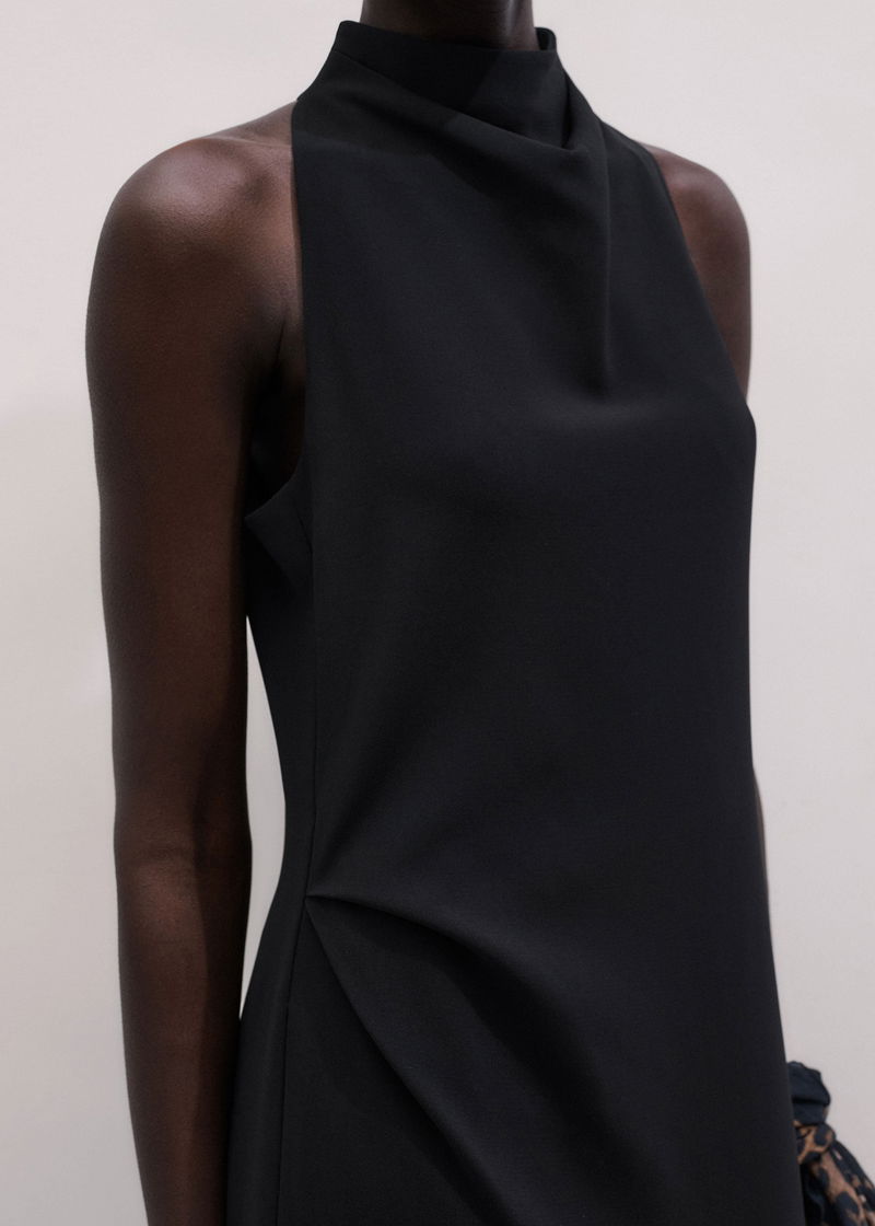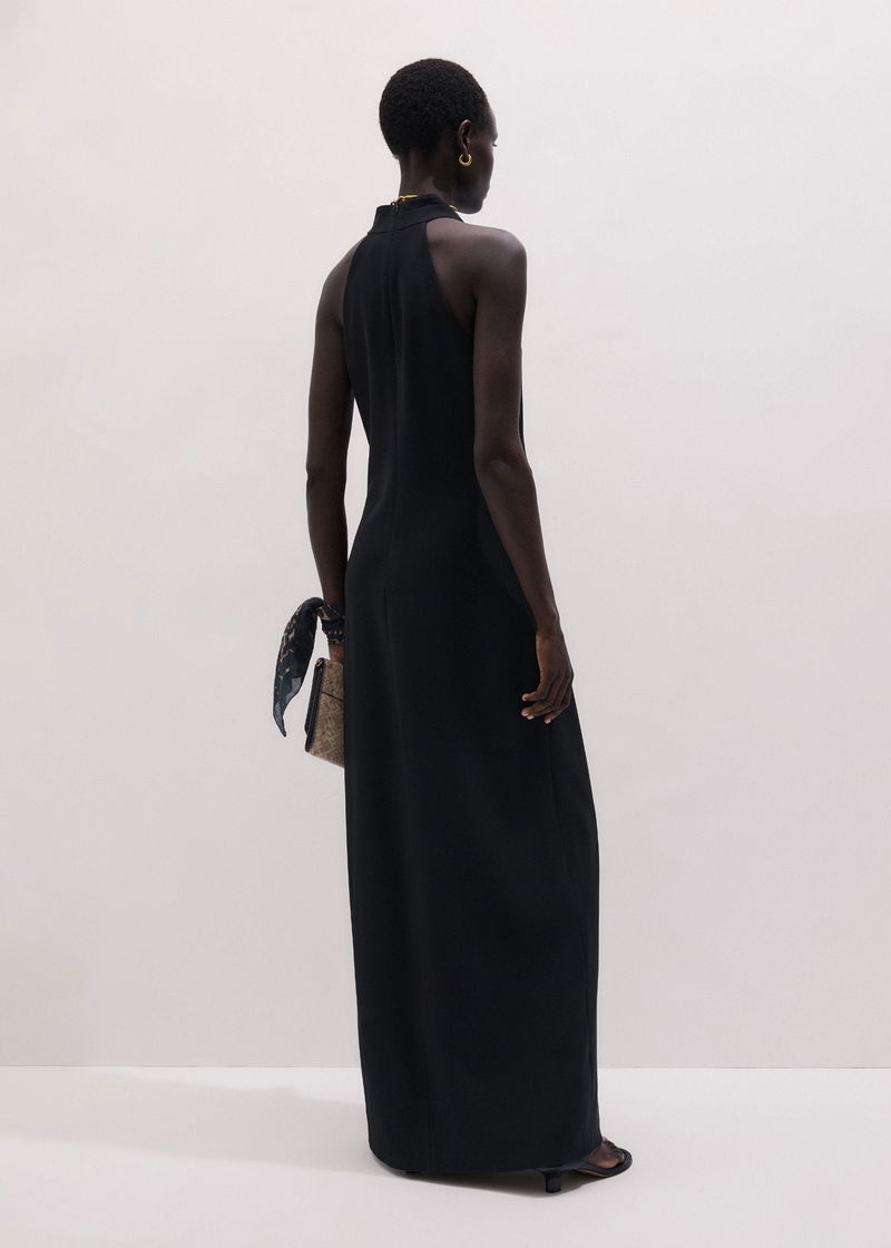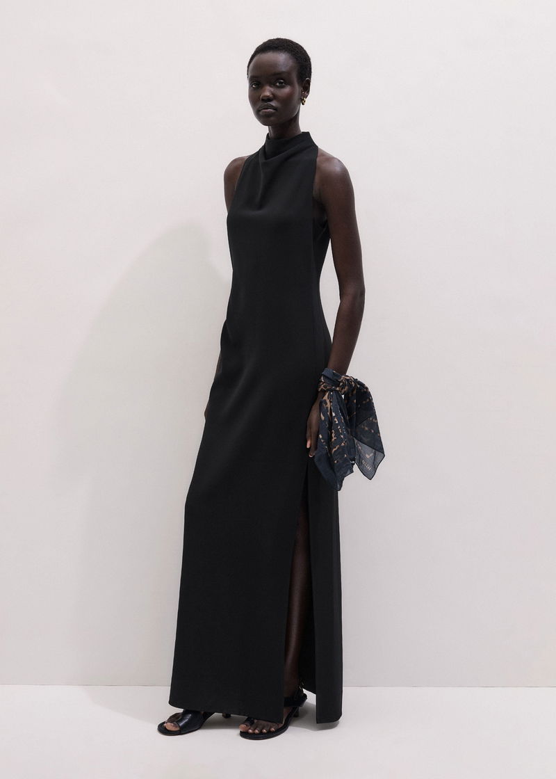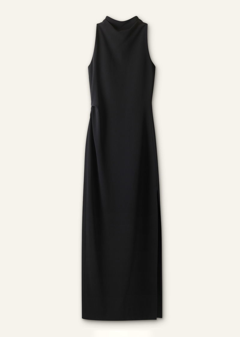 ME+EM's Black Draped Full Length Dress is equipped with a split at the hem for ease of movement and a contemporary edge.