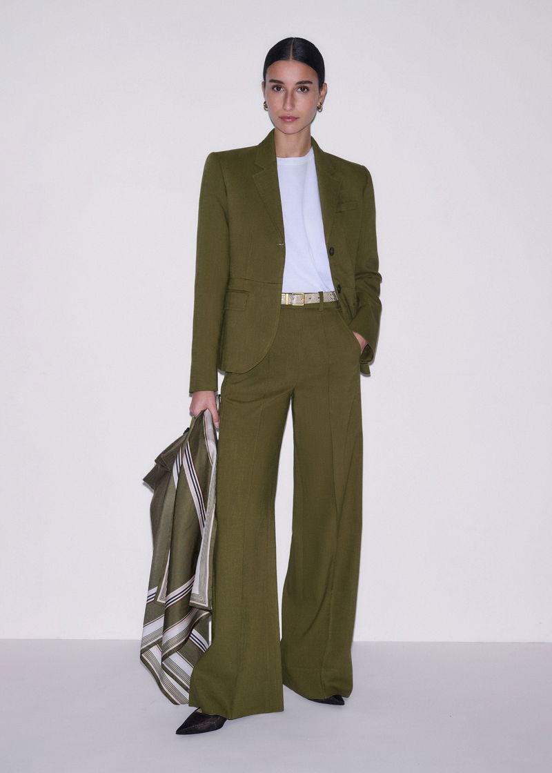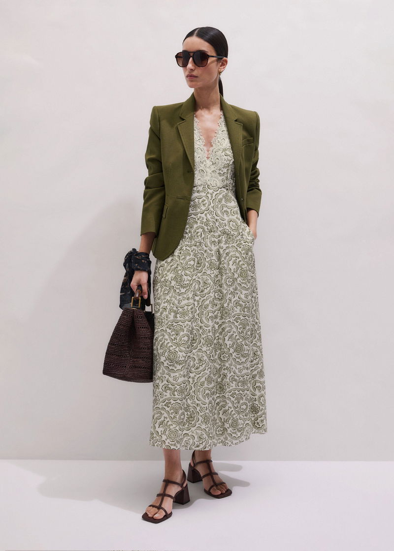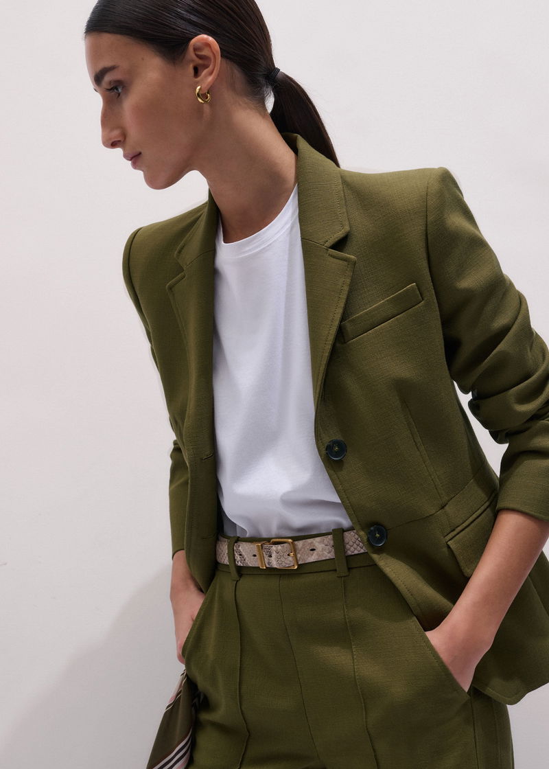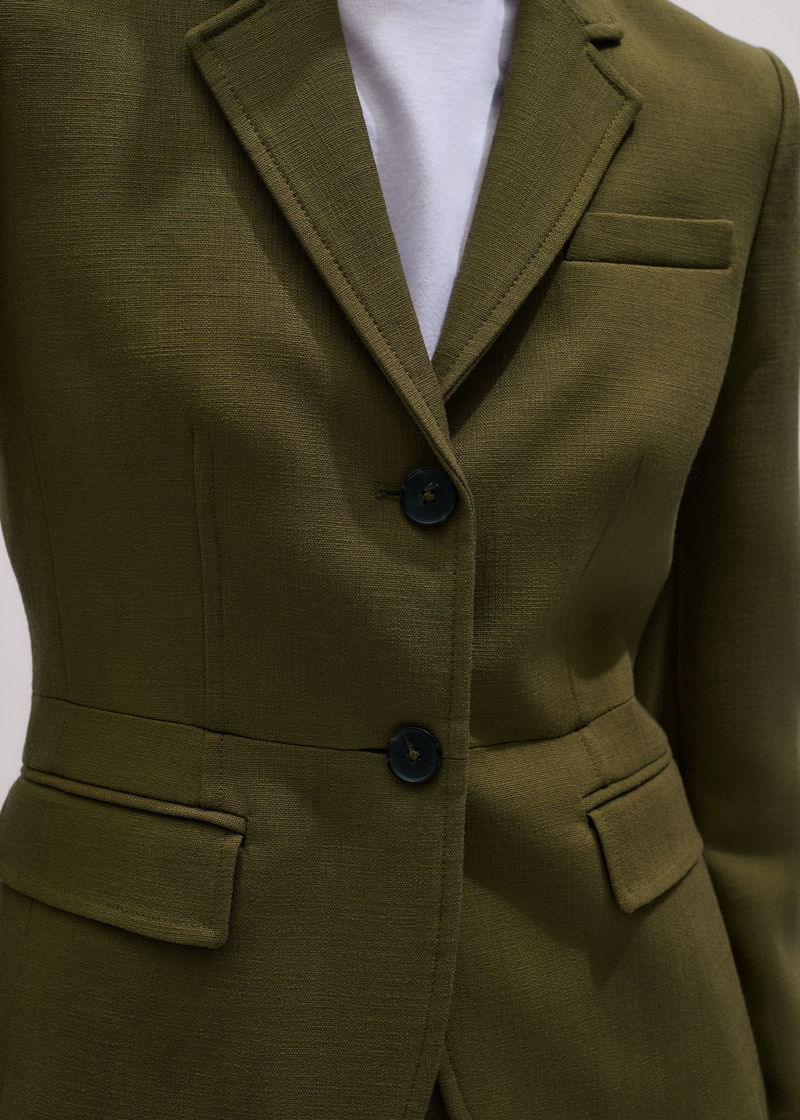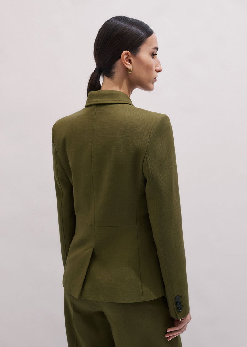 ME+EM's Olive Green Soft Sculpt Jacket is expertly woven from a fluid tailoring fabric with a soft yet structured finish.