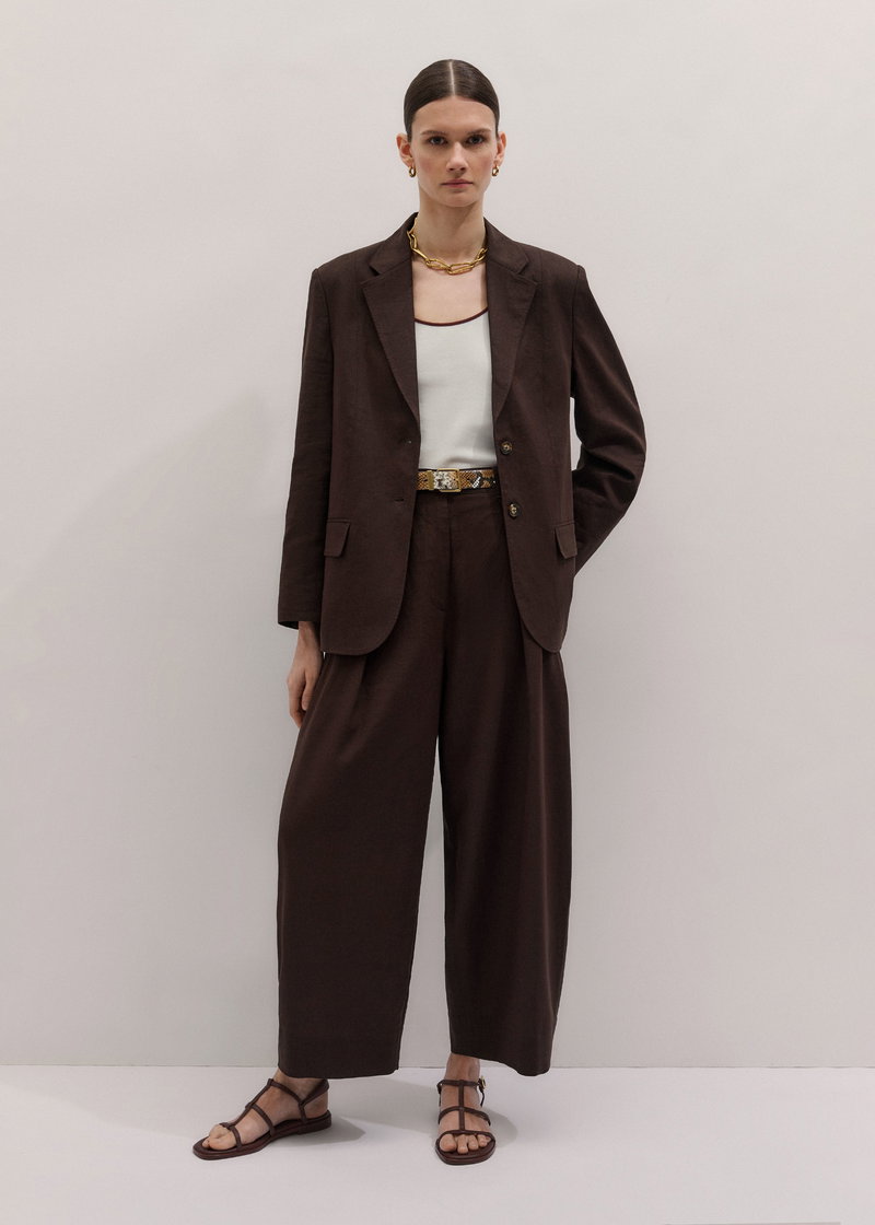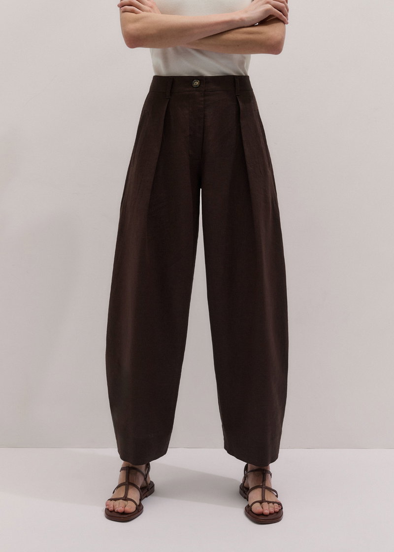 ME+EM's Brown Extreme Taper Trouser falls to our exaggerated tapered silhouette, curving in at the ankle for a naturally flattering drape.