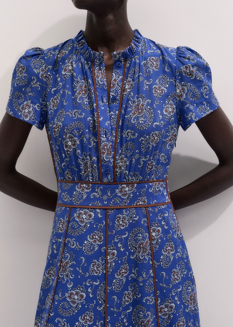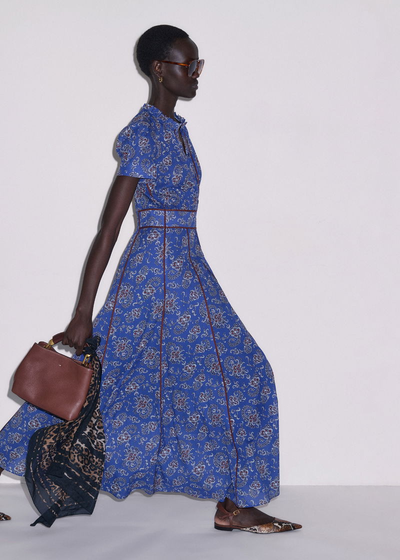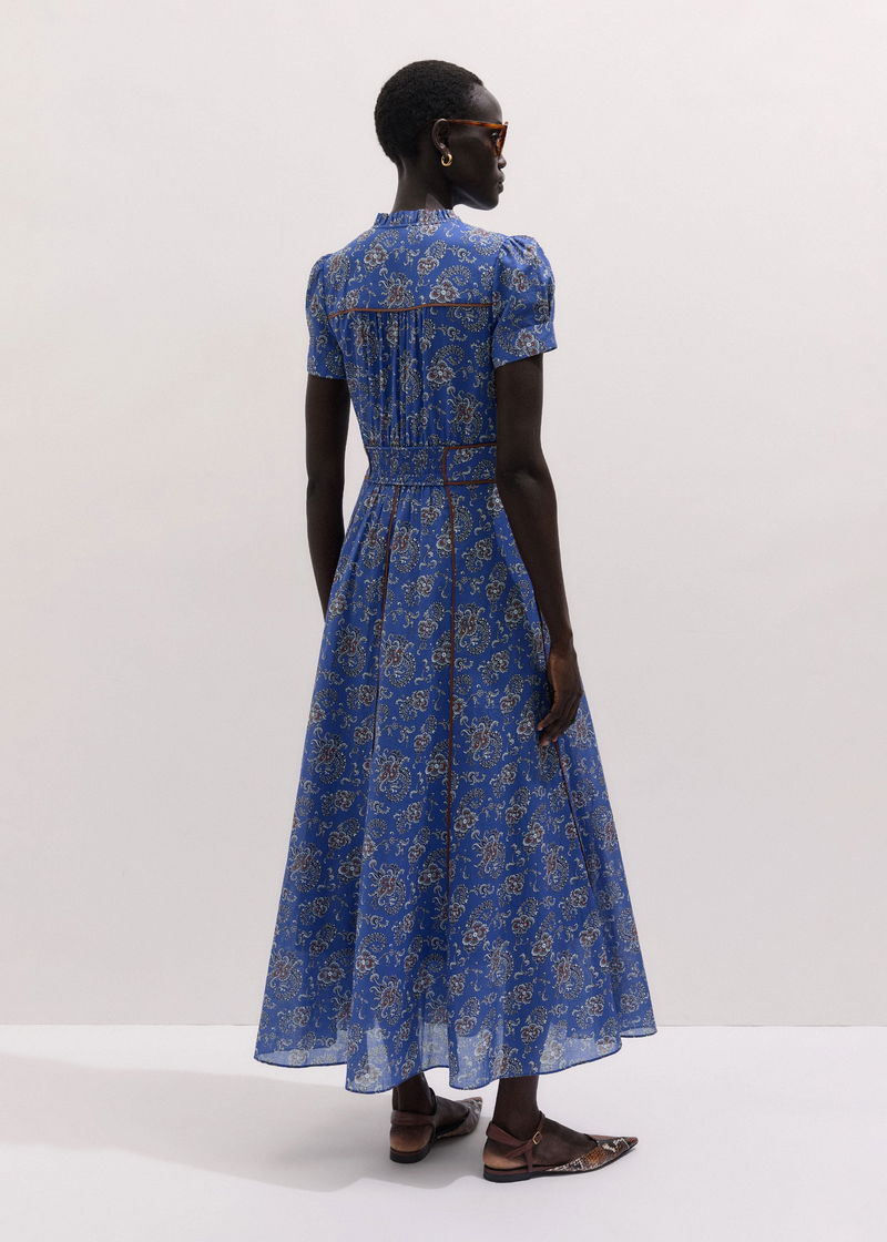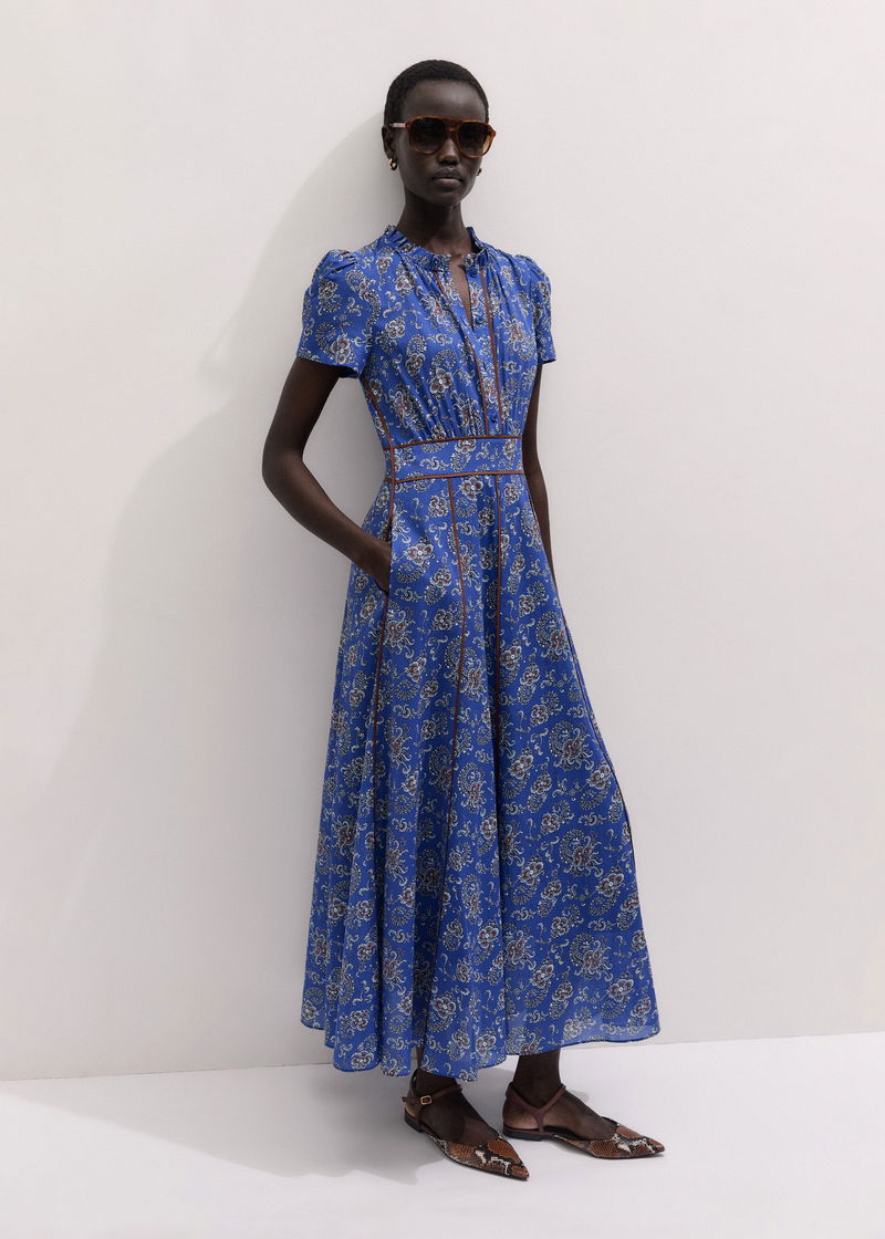 ME+EM's Blue Fit + Flare Maxi Dress is designed with a shirred back panel, creating comfortable stretch.