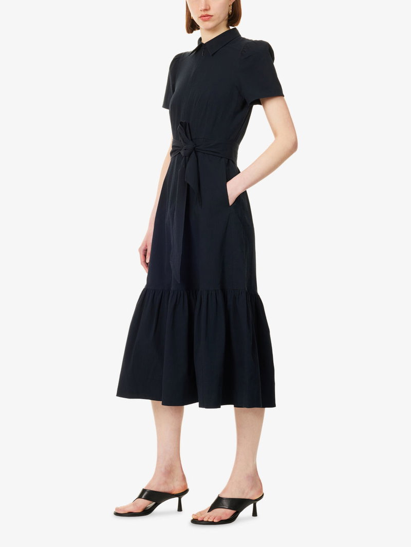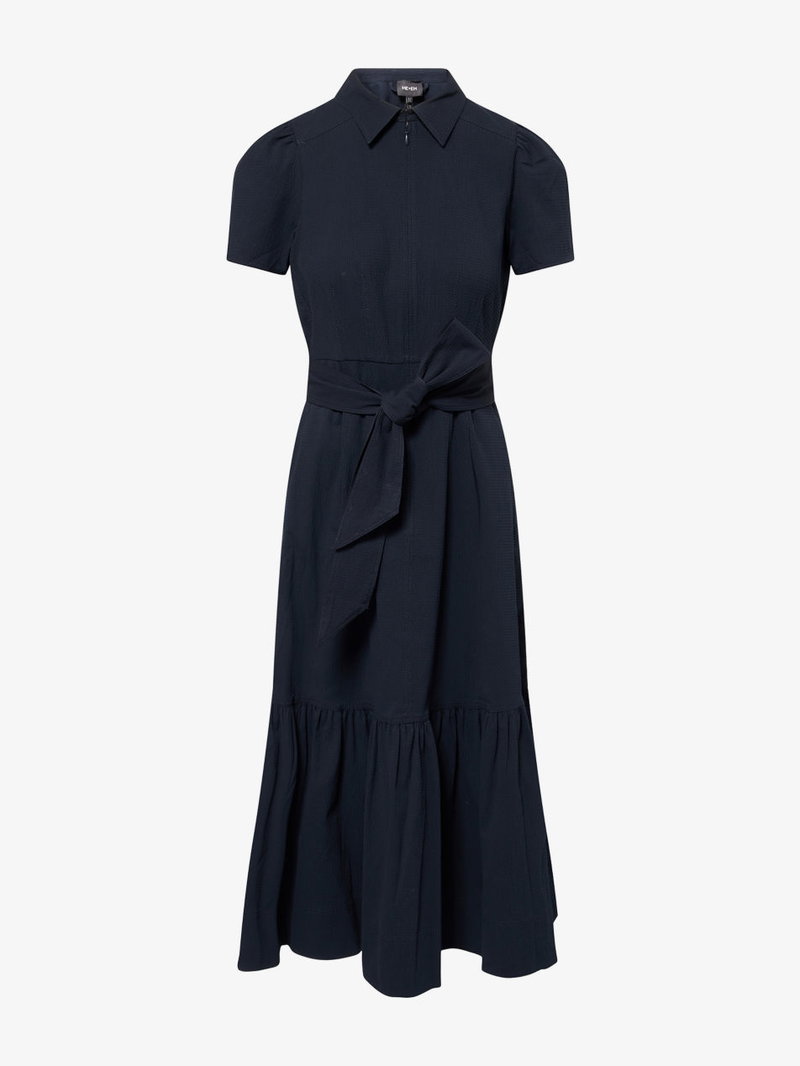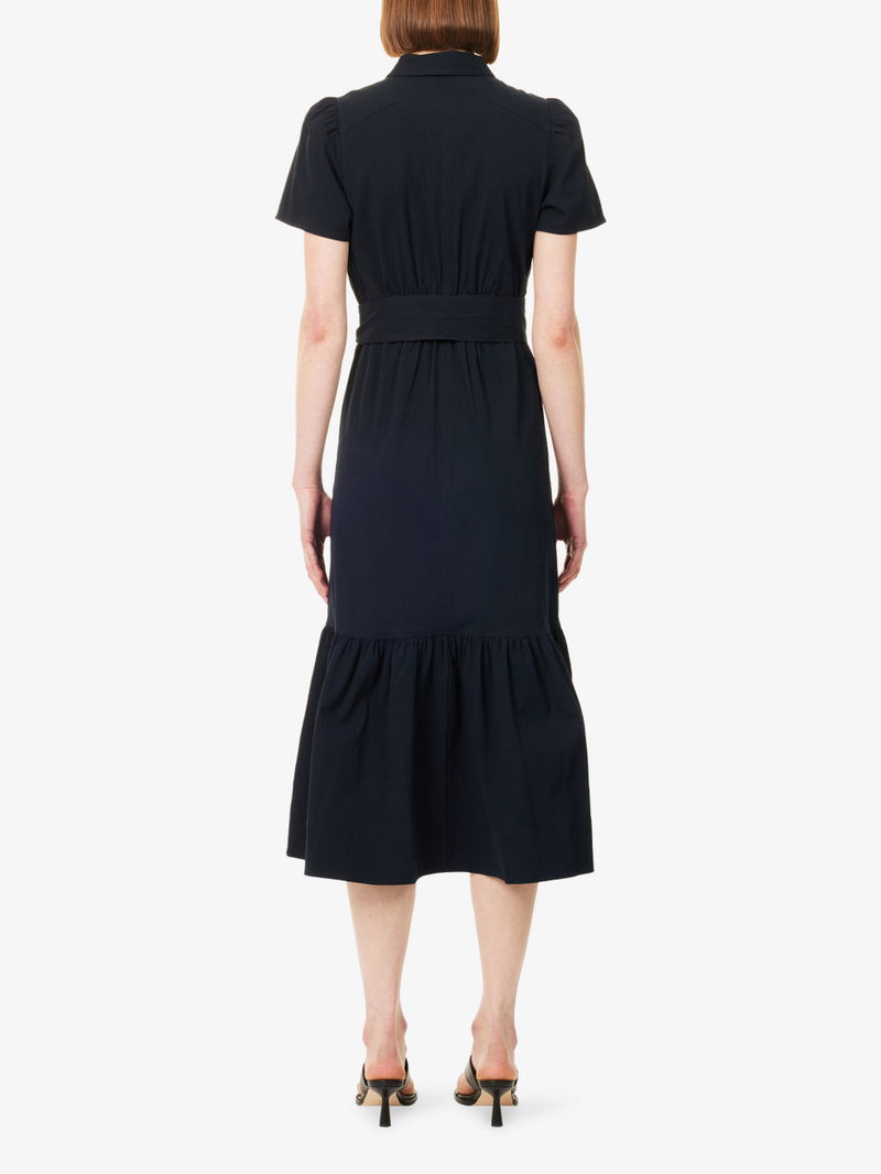 Fit And Flare Seersucker Cotton Midi Dress