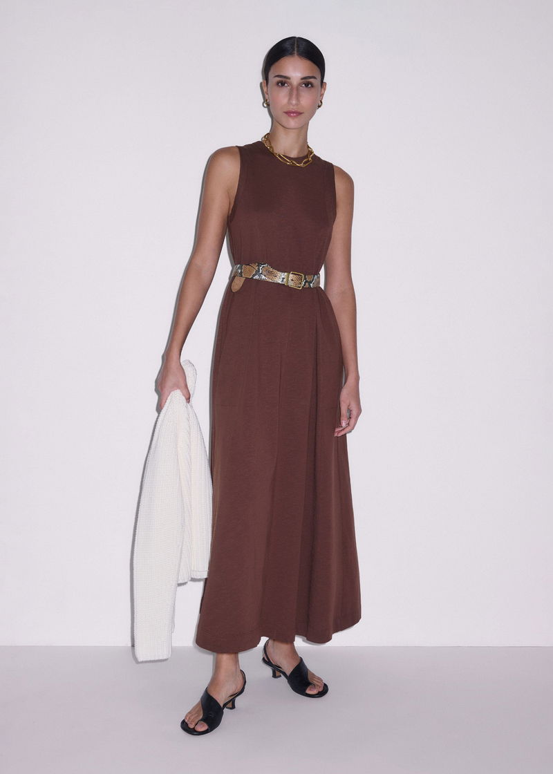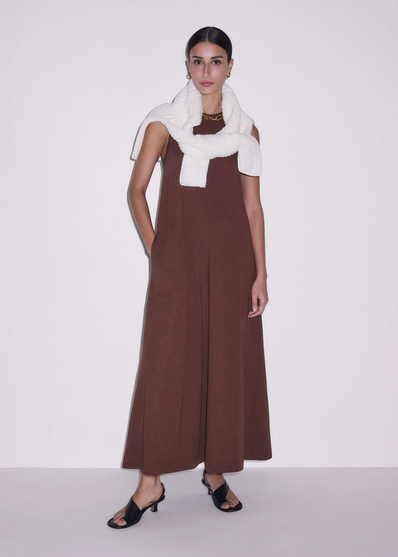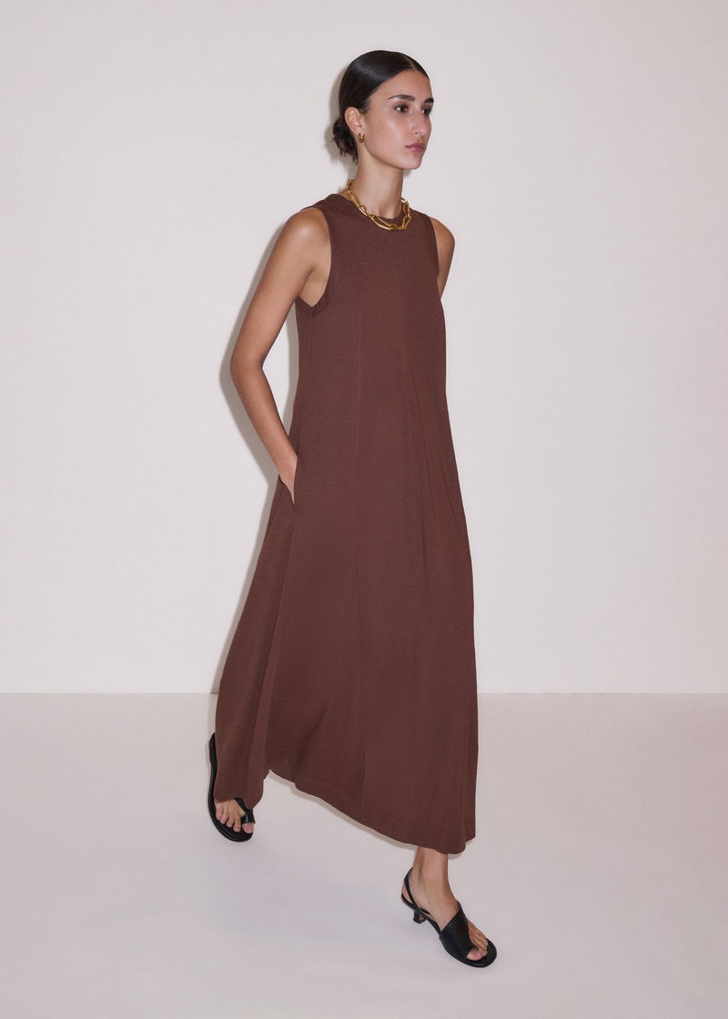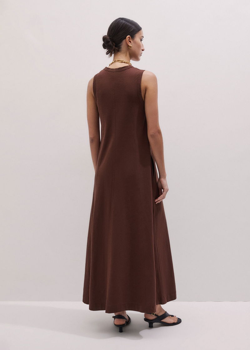 ME+EM's Cinnamon Brown Maxi Swing Dress is crafted from midweight cotton jersey with a soft, slubbed texture.