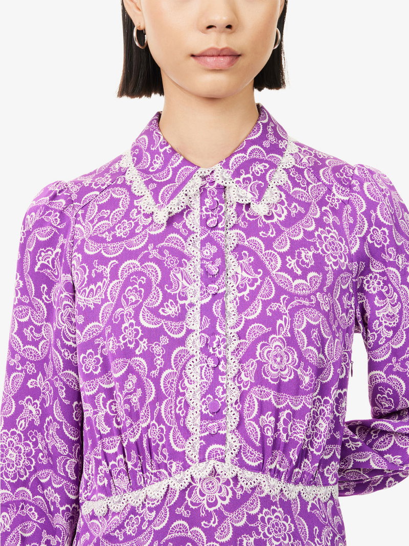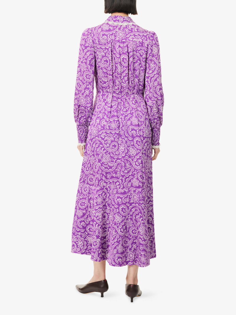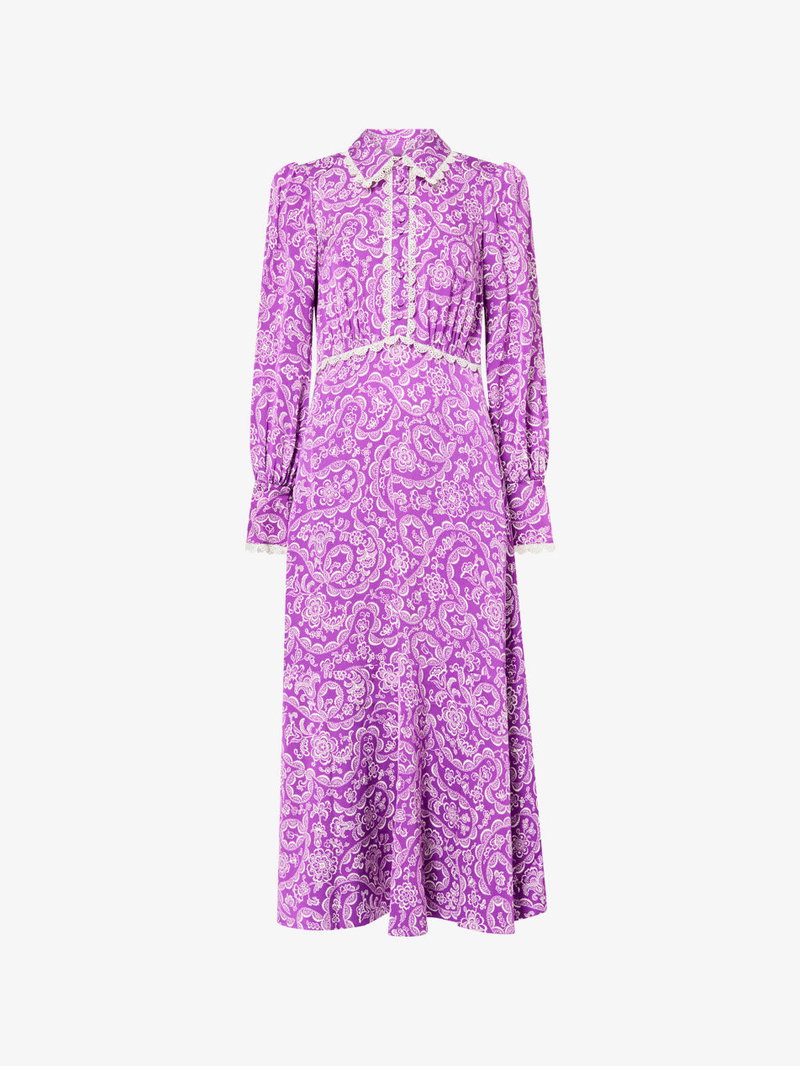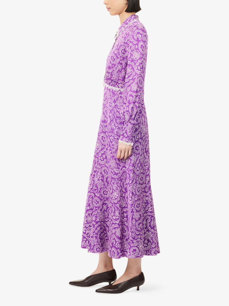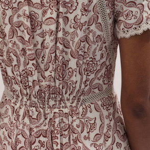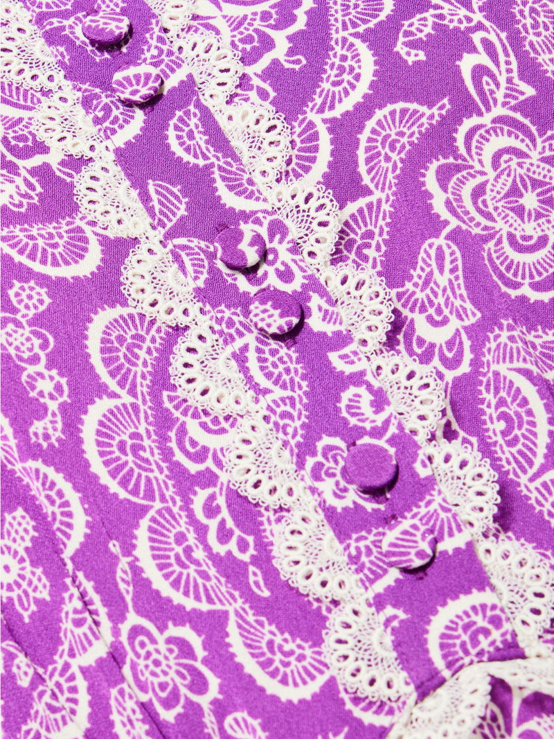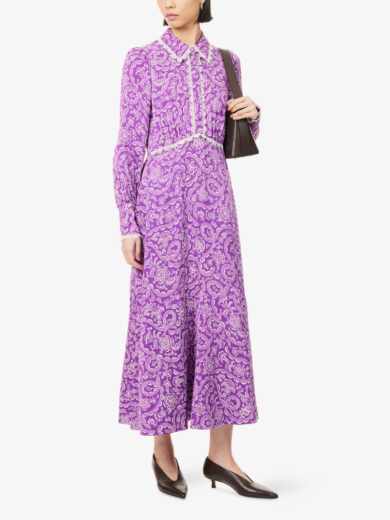 Floral-Print Lace-Trim Fit-And-Flare Crepe Maxi Dress