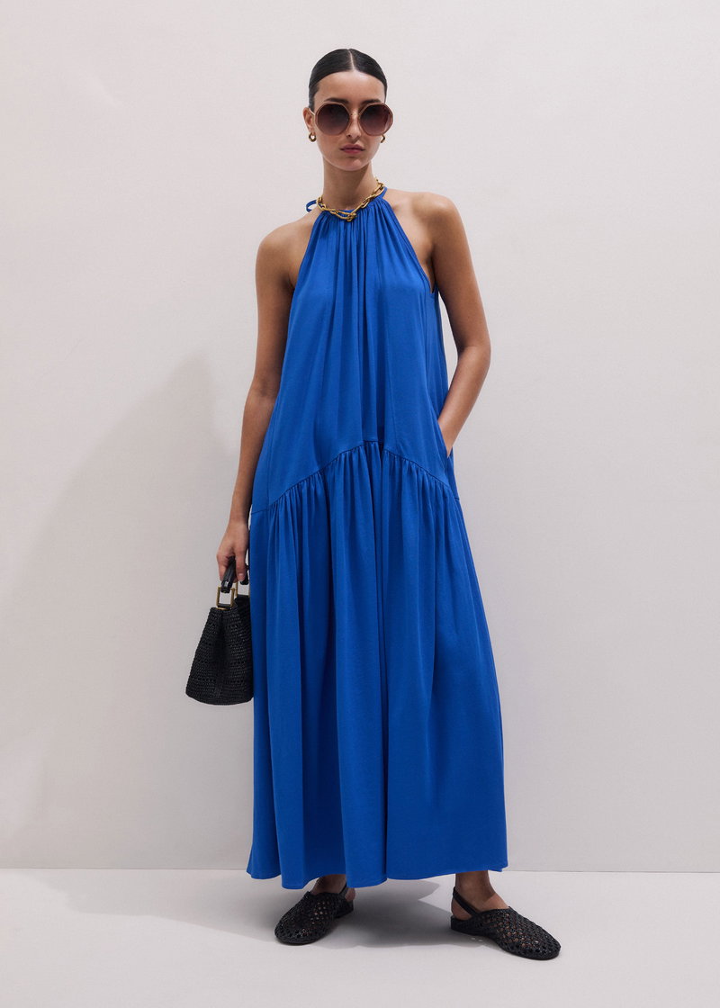 ME+EM's Blue Halterneck Maxi Dress is crafted from cotton jersey with a clean, fluid drape.