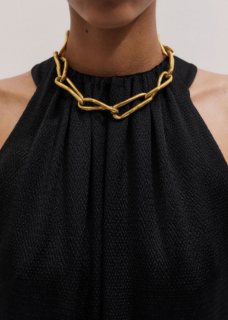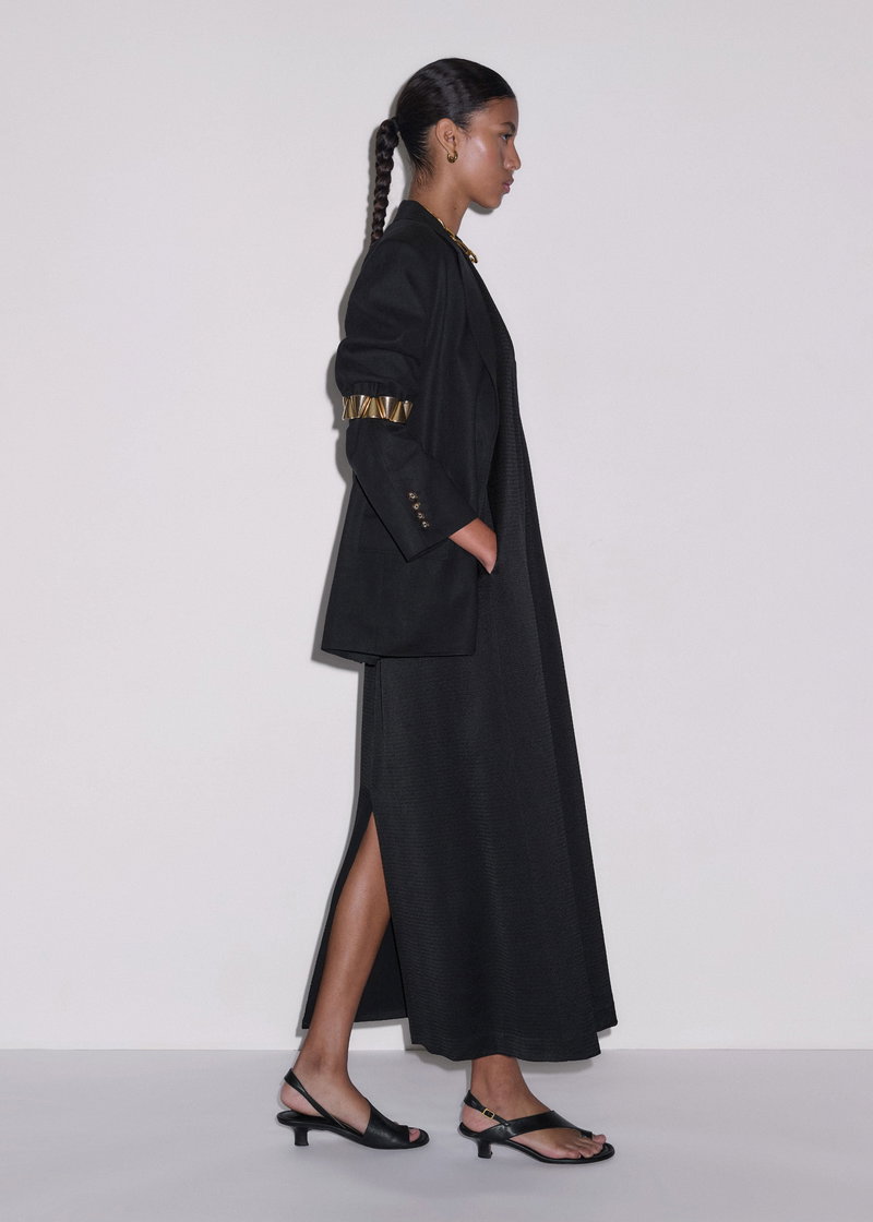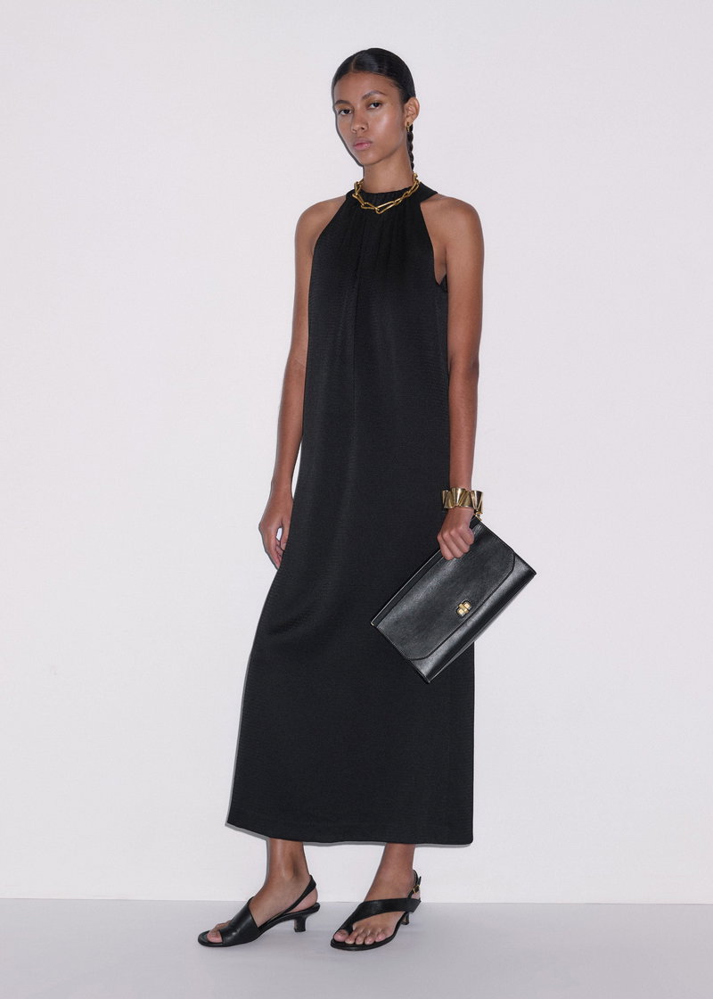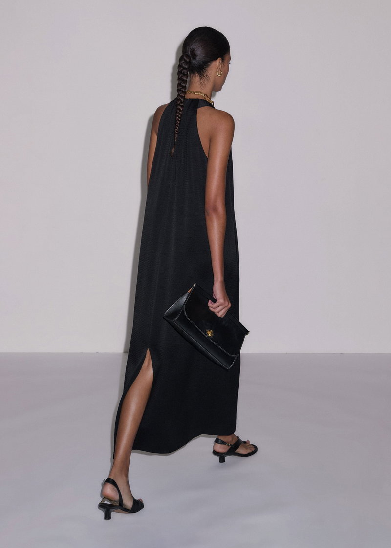 ME+EM's Black Halterneck Maxi Dress is cut to a nonchalant shift shape and features a contemporary slit at the back for an effortlessly elevated finish.