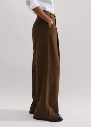 ME+EM's Brown High Waist Contour Trouser features cleverly contoured seams that fall to inverted pleats to create a structured, modern shape through the leg.