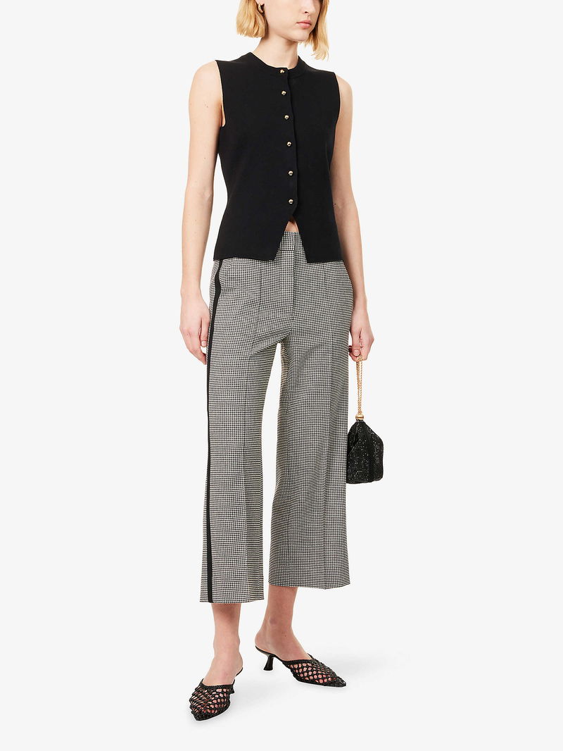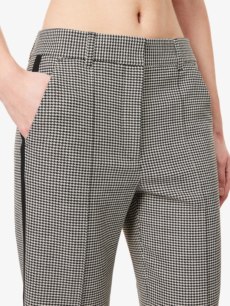 Houndstooth-Pattern Straight-Leg Woven Trousers