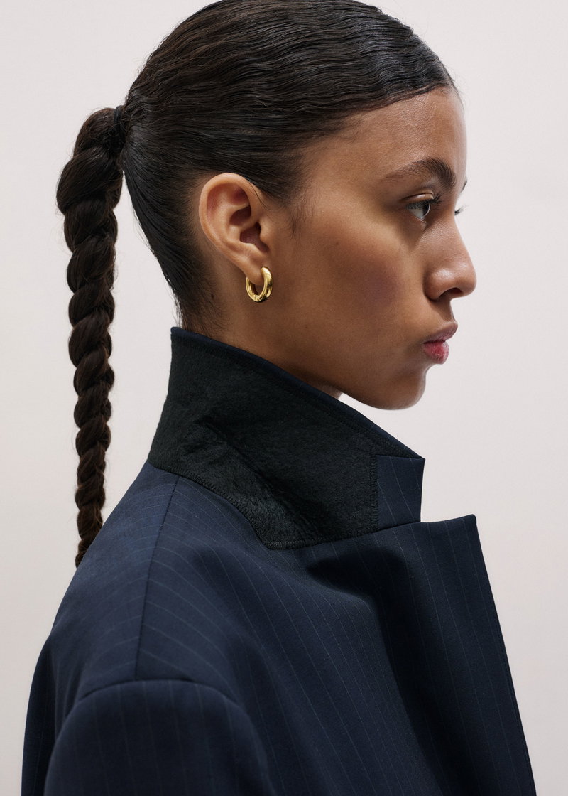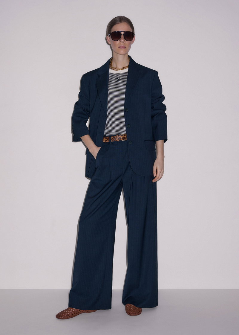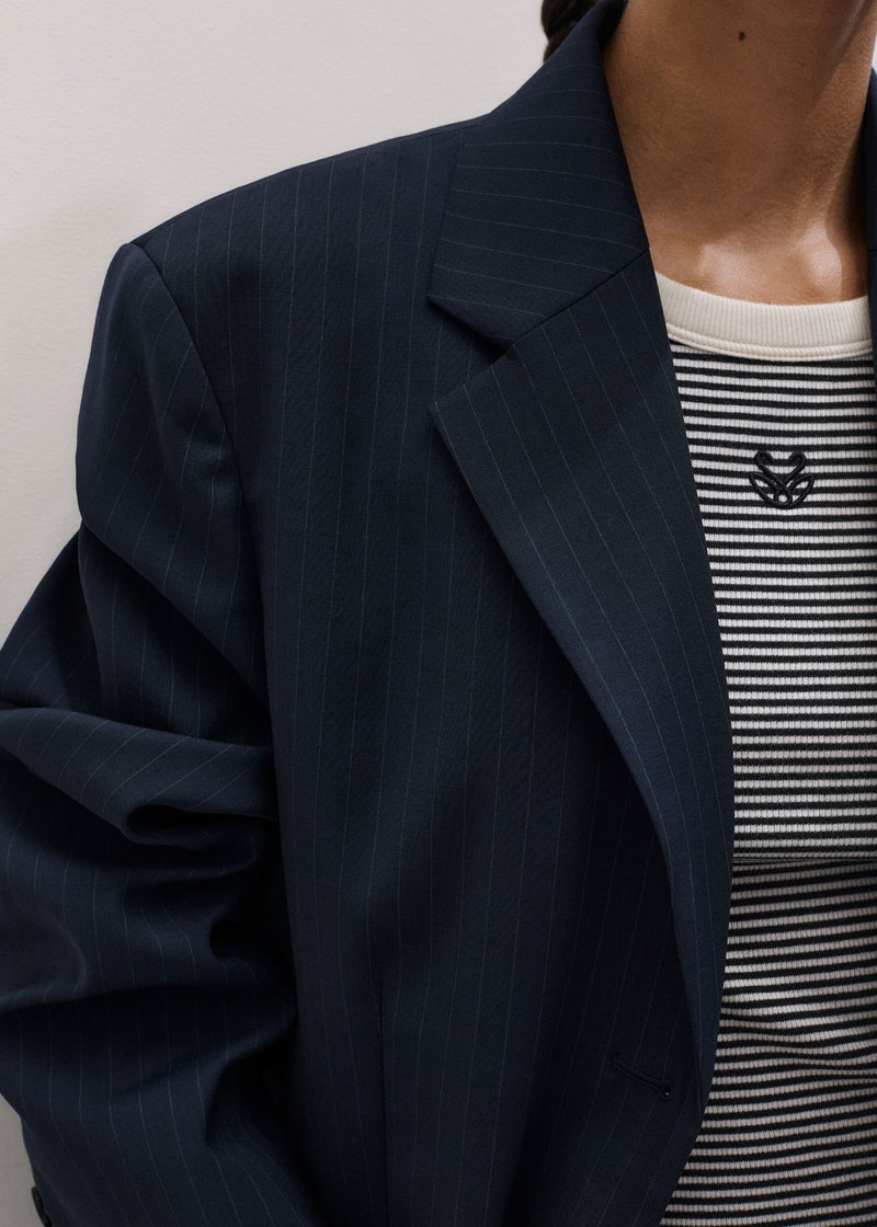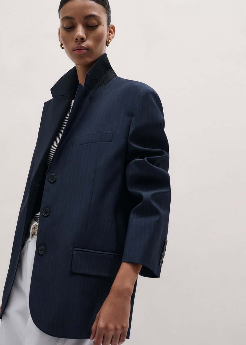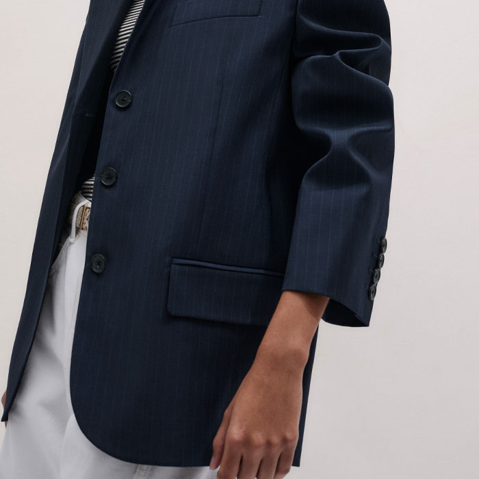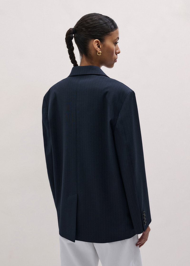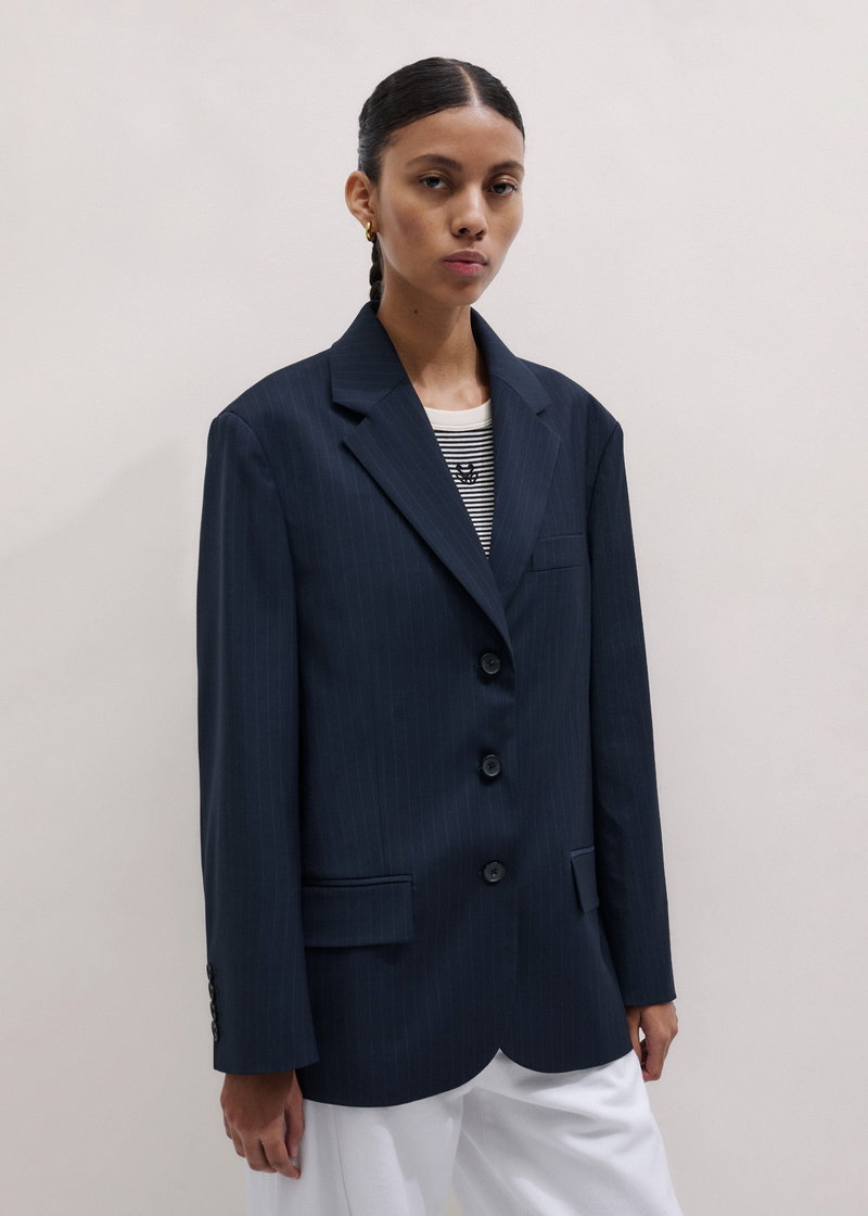 ME+EM's Navy Pinstripe Oversized Blazer is made from a soft yet structured wool-blend fabric.