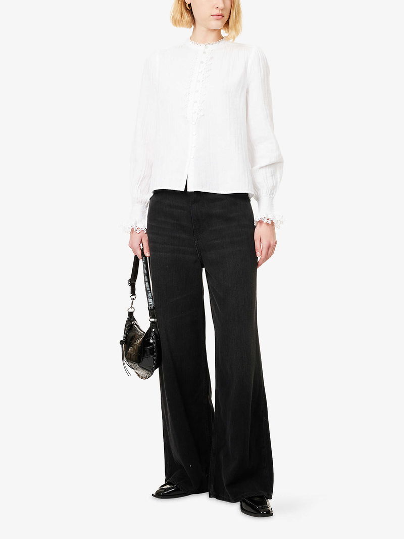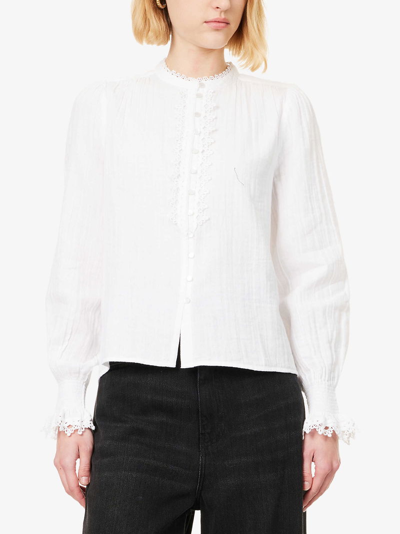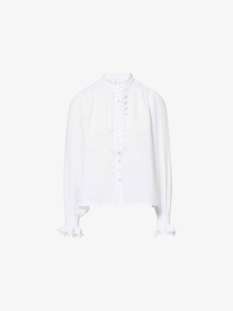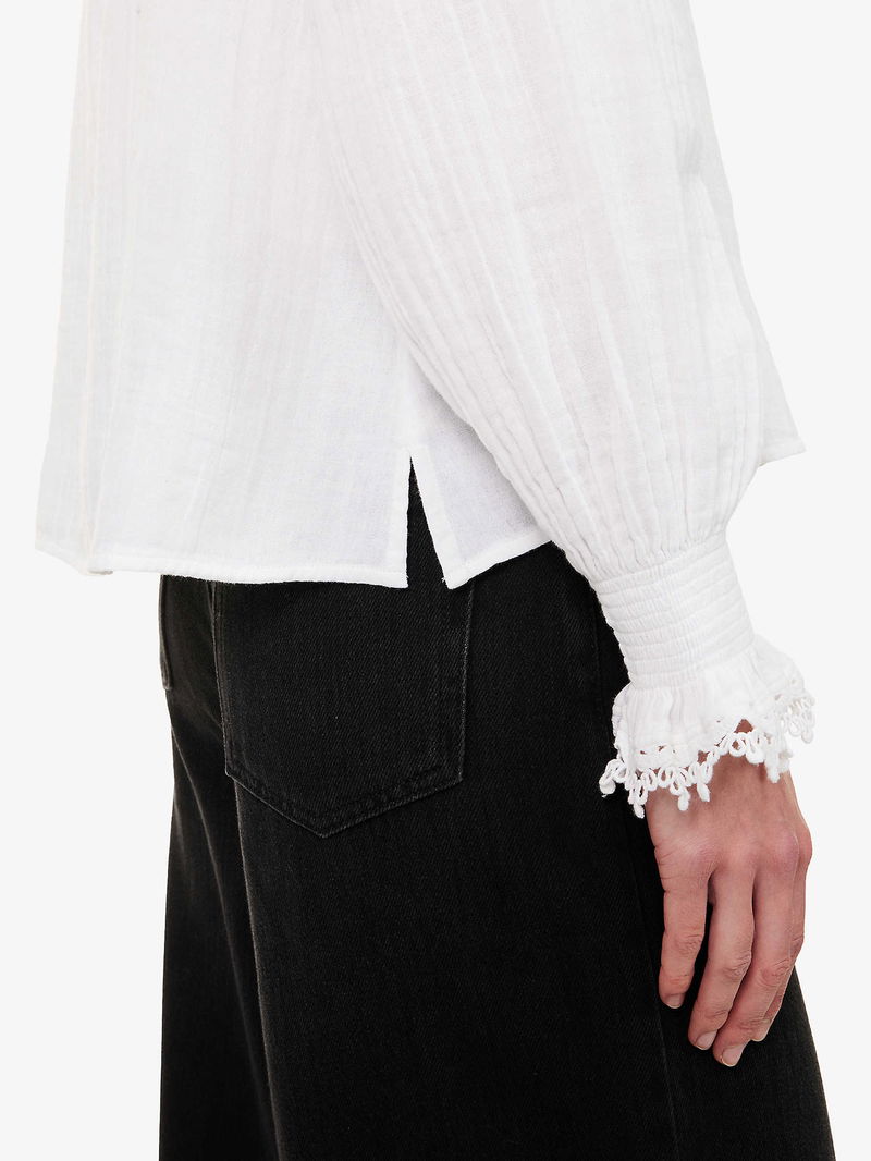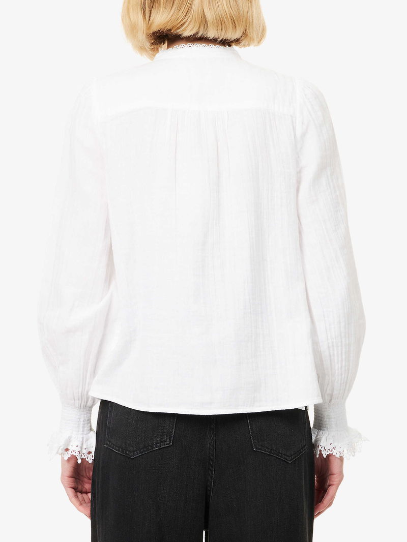 Lace-Trim Cheesecloth Cotton Blouse