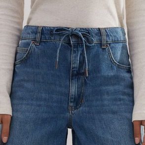 ME+EM's Blue Tapered Lightweight Denim Pant features expertly placed darted seams to create an architectural feel.