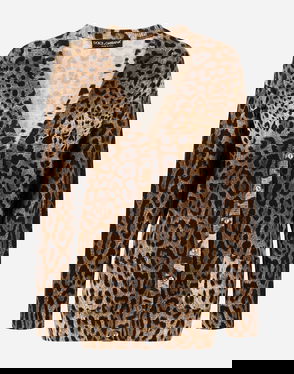 Merino Cashmere Leopard Straight Knit Tee Cocoa Brown Multi