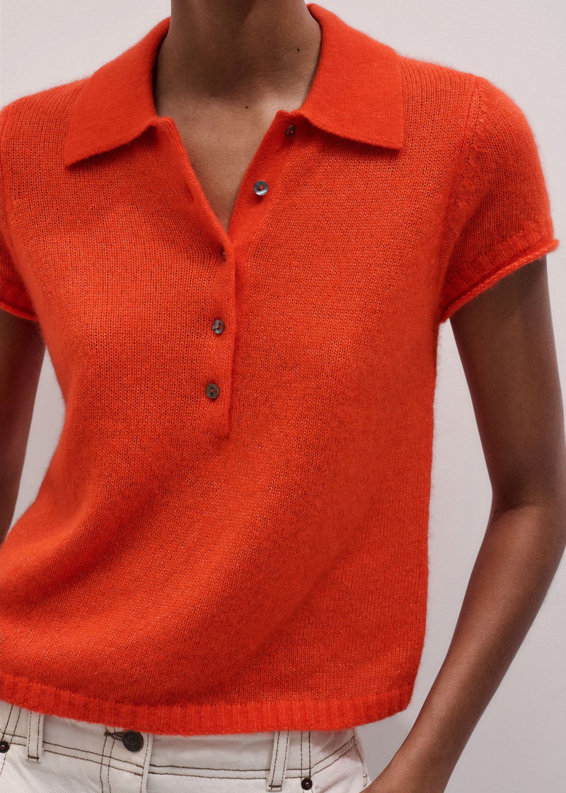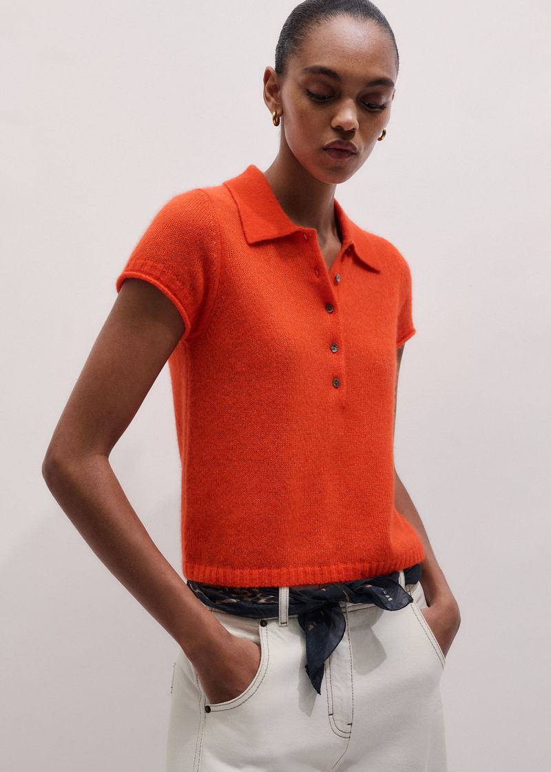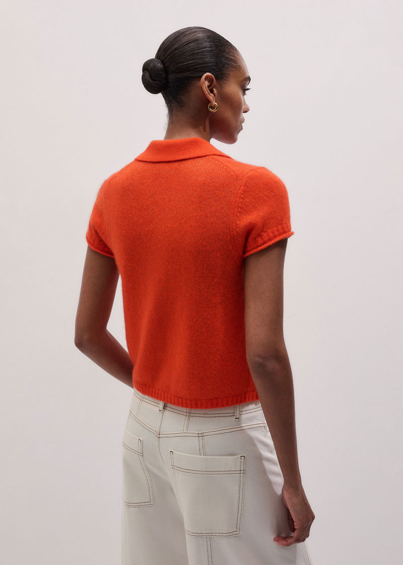 ME+EM's Orange Merino Cashmere Silk Straight Polo Tee is crafted from merino wool, cashmere and silk.