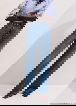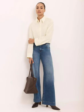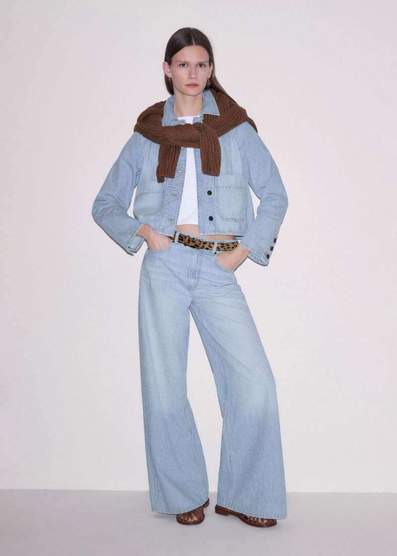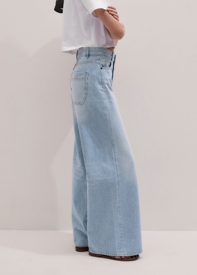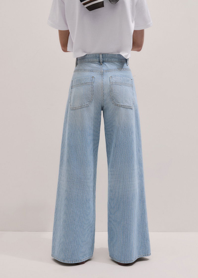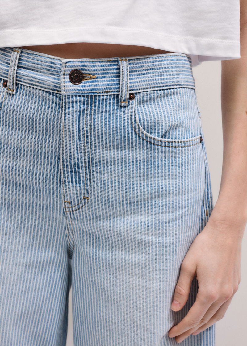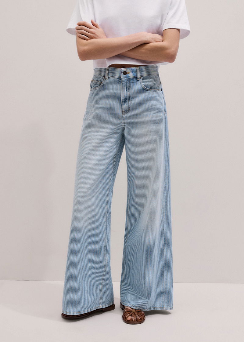 ME+EM's Blue Micro Stripe Ultimate Wide-Leg Jean is made from lightweight cotton denim with a soft hand feel for natural fluidity.