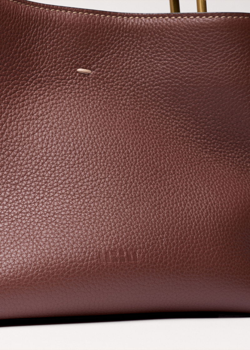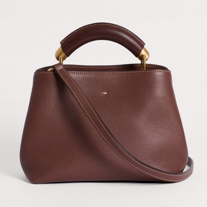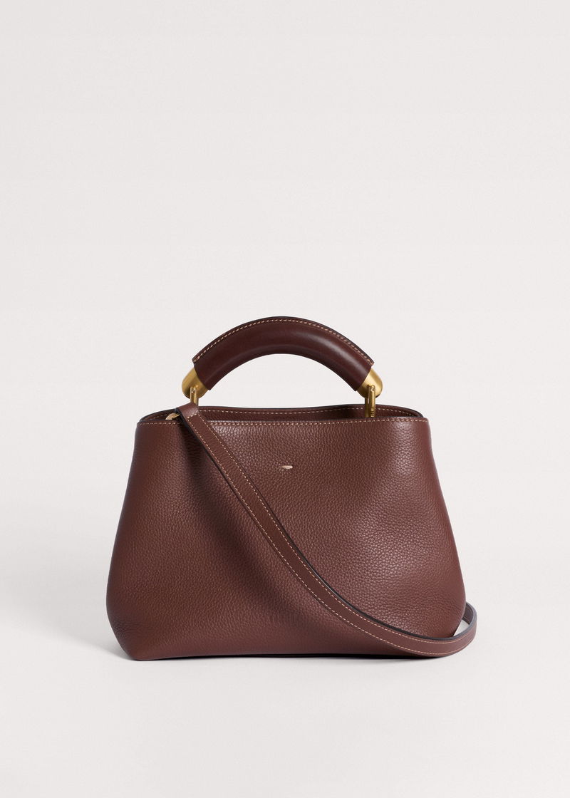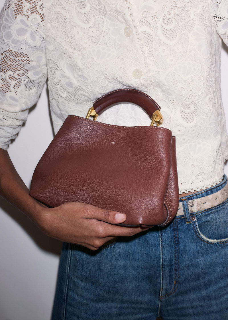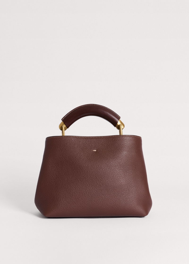 ME+EM's Brown Mini Day Bag is made from supple tumbled Italian leather with a leather-wrapped top handle.