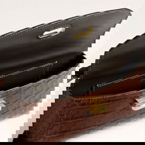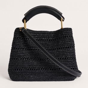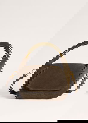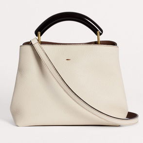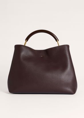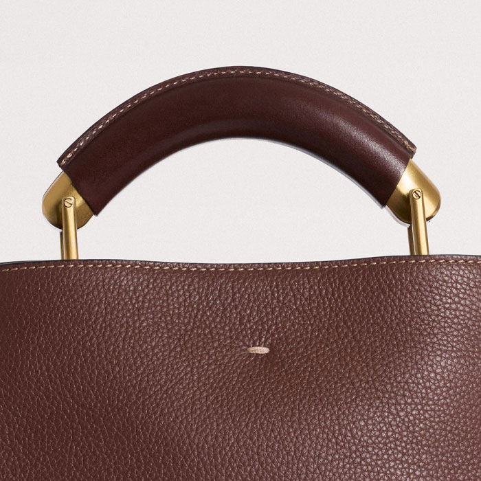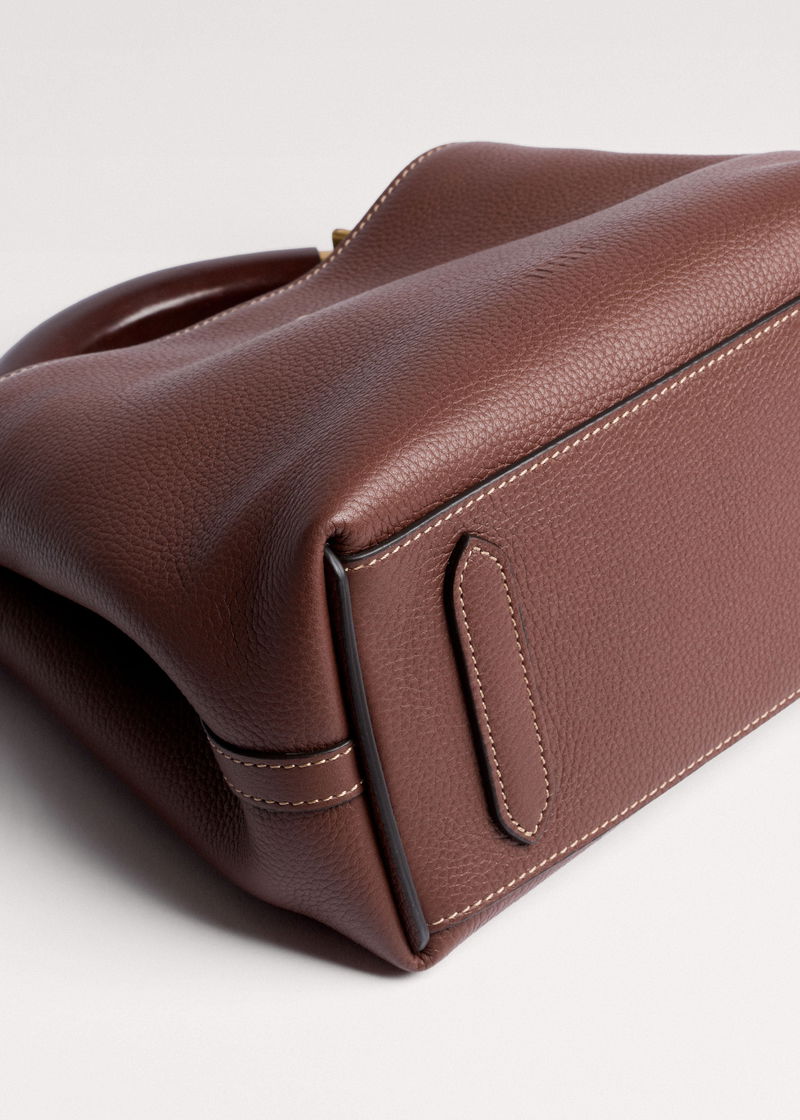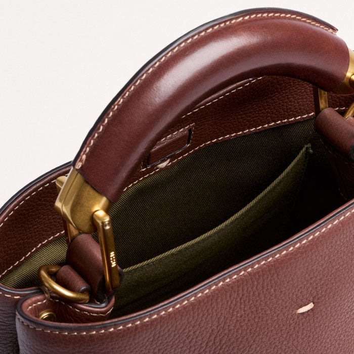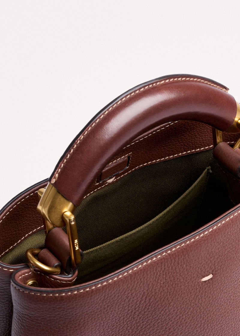 ME+EM's Brown Mini Day Bag is made from supple tumbled Italian leather with a leather-wrapped top handle.