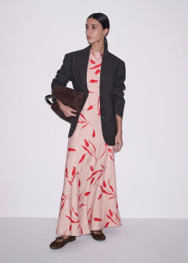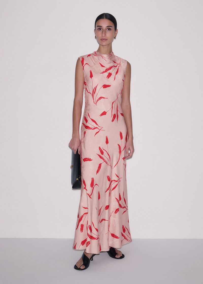 ME+EM's Pink Bias Cut Maxi Dress fastens with a zip at the back to retain a clean, polished finish from the front.