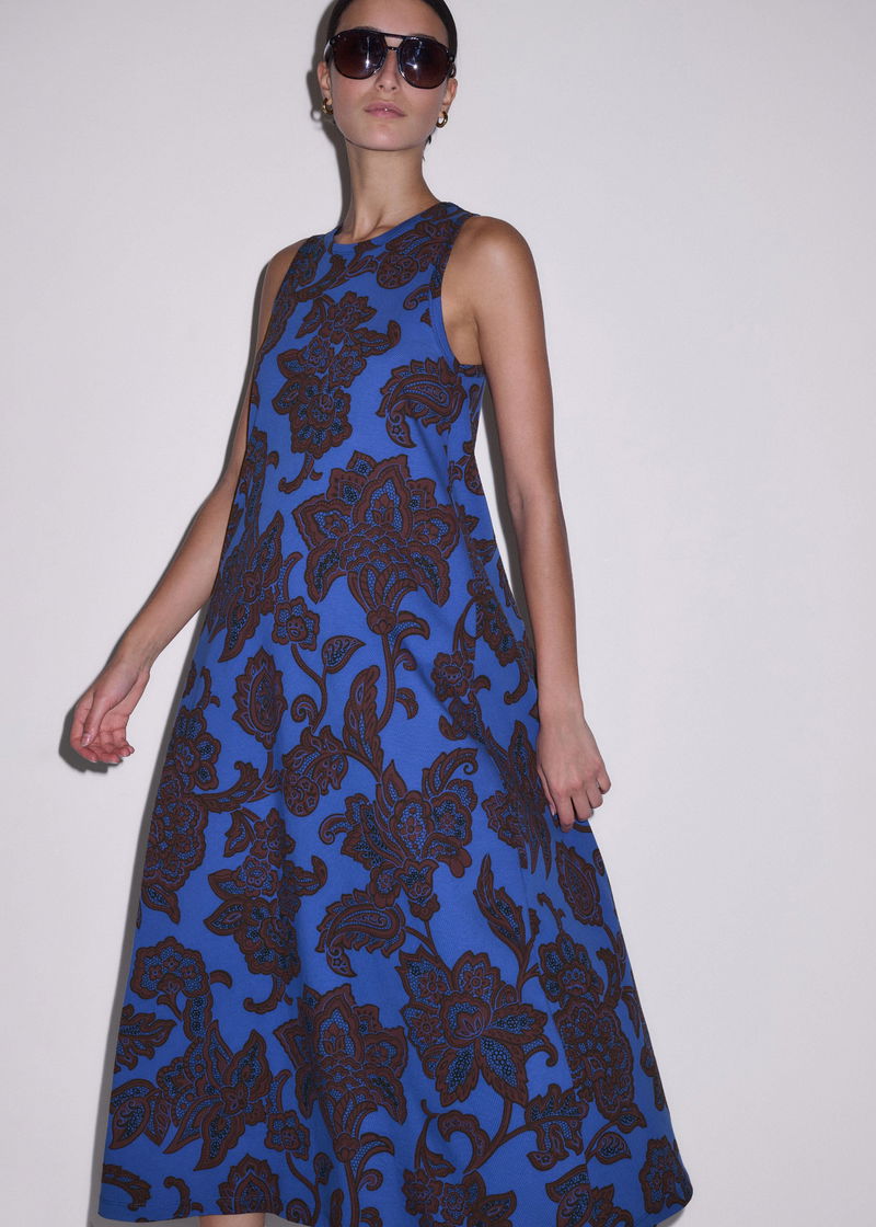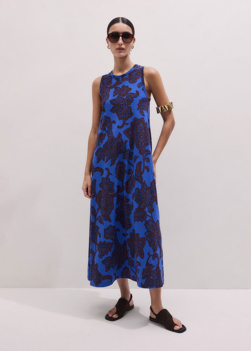 ME+EM's Blue Maxi Swing Dress is made from organic cotton and falls to a maxi-length hem.