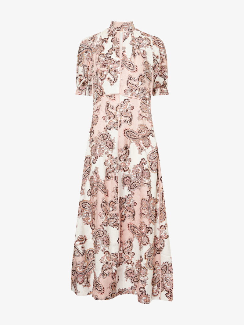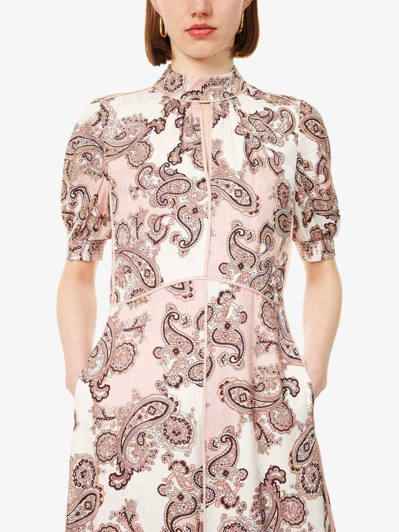 Paisley-Print Fit-and-Flare Jacquard-Crepe Maxi Dress