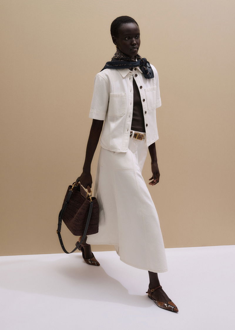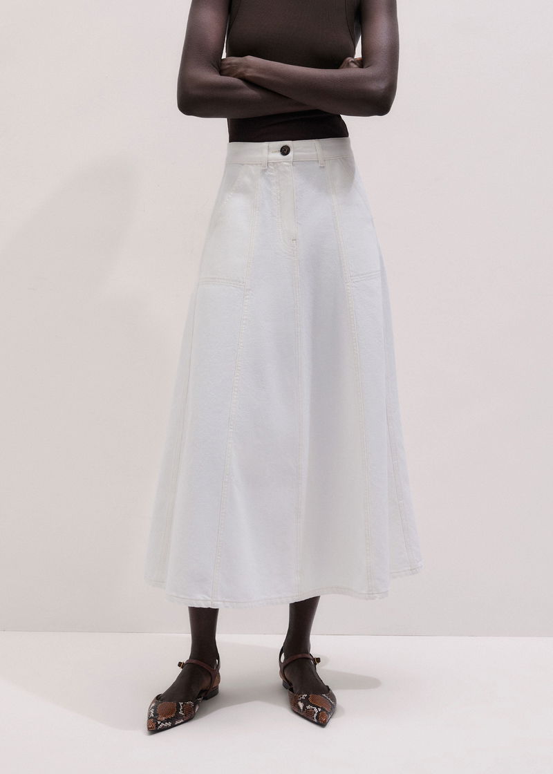 ME+EM's White Panelled A-Line Maxi Skirt is made from lightweight white denim to suit the warmer months.