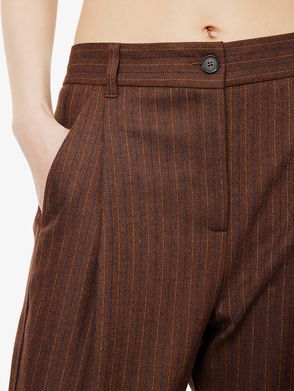 Pinstripe Barrel-Leg Stretch-Woven Trousers
