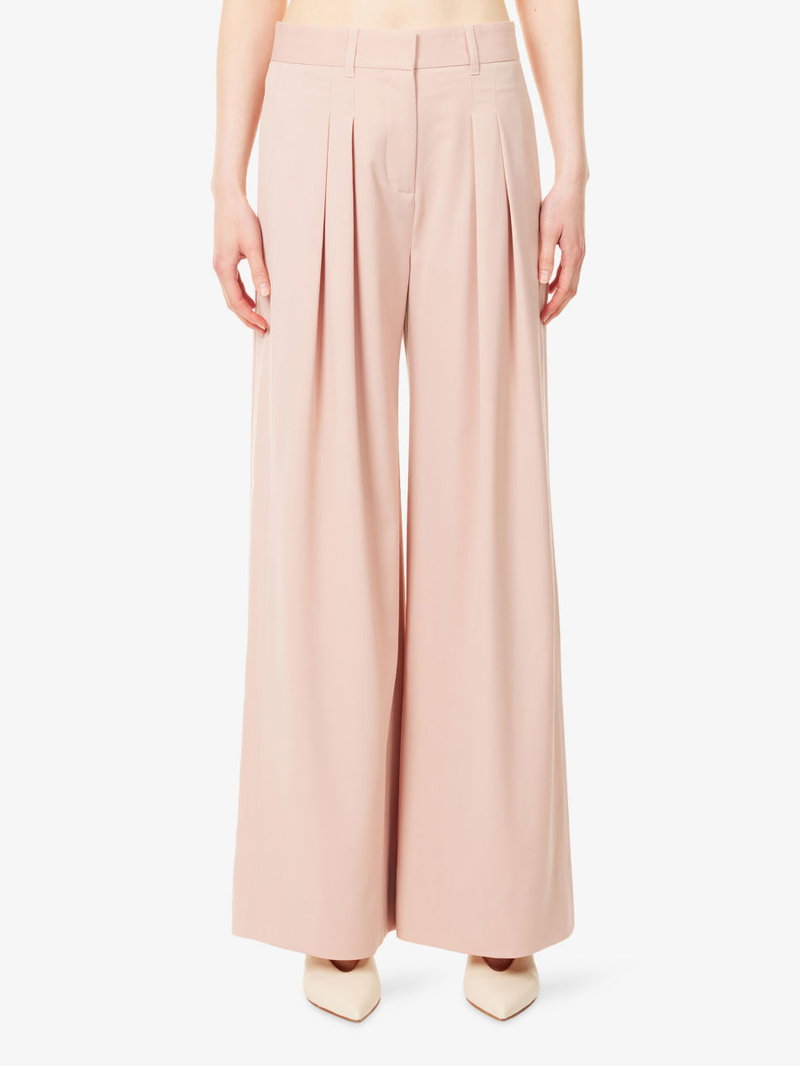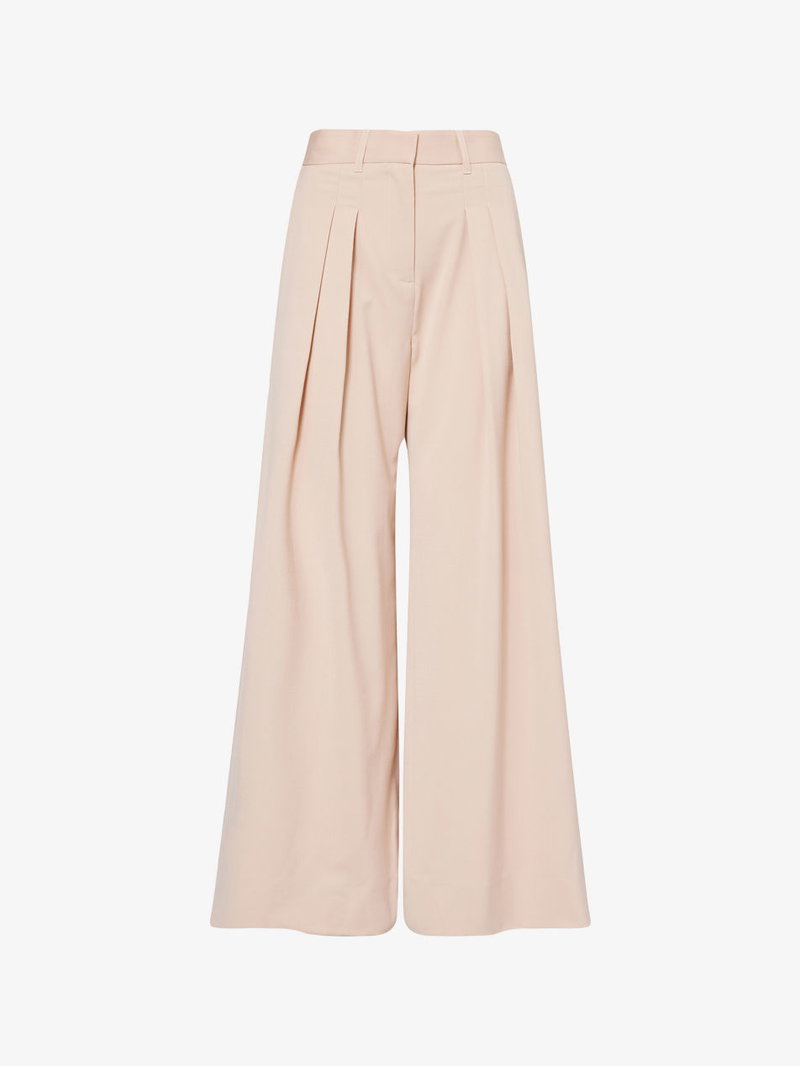 Pleat-Front Wide-Leg Wool-Blend Trousers
