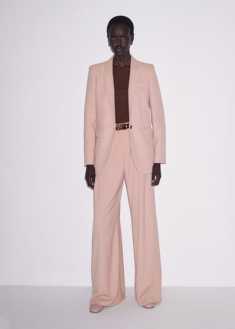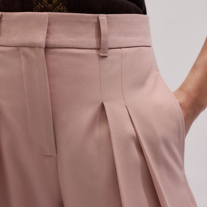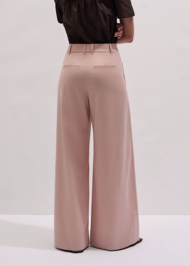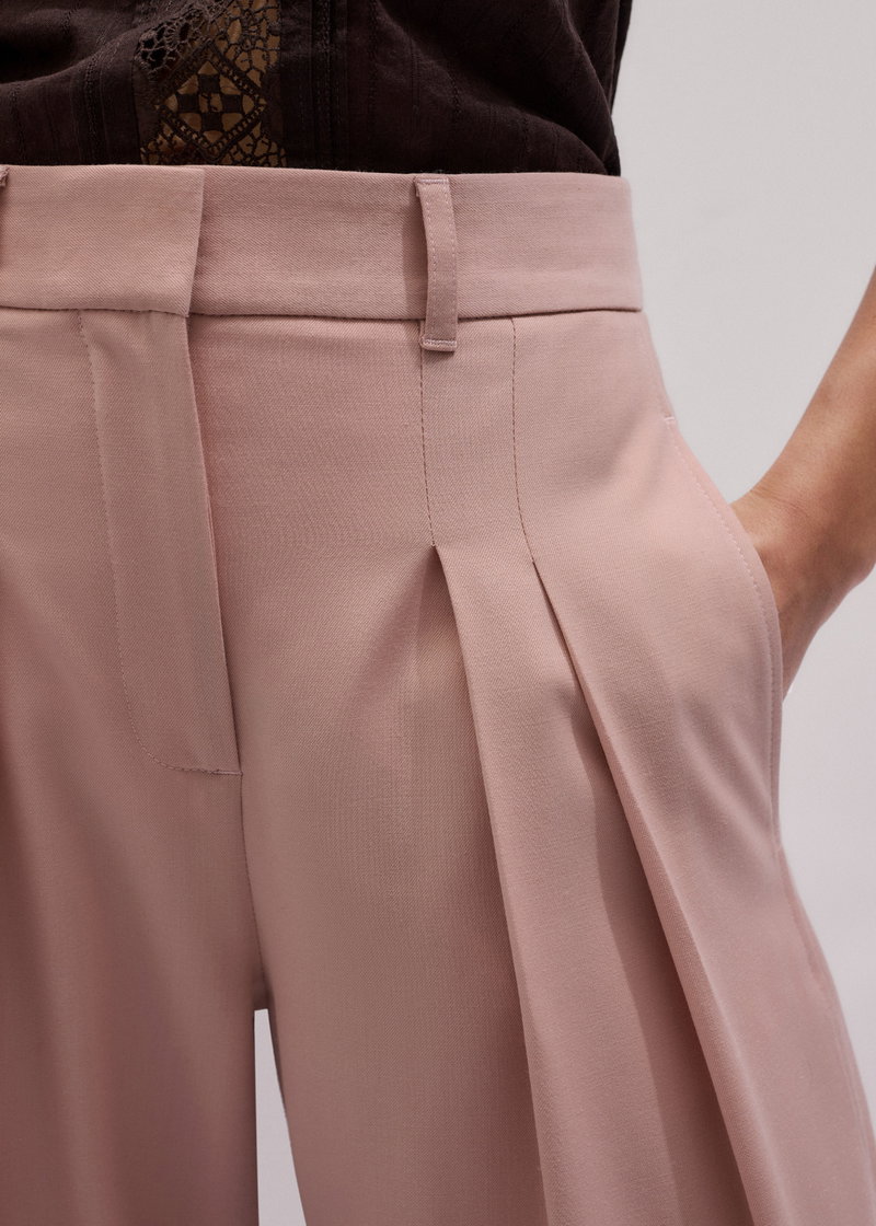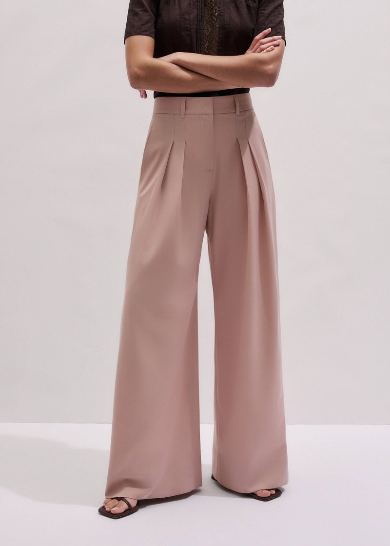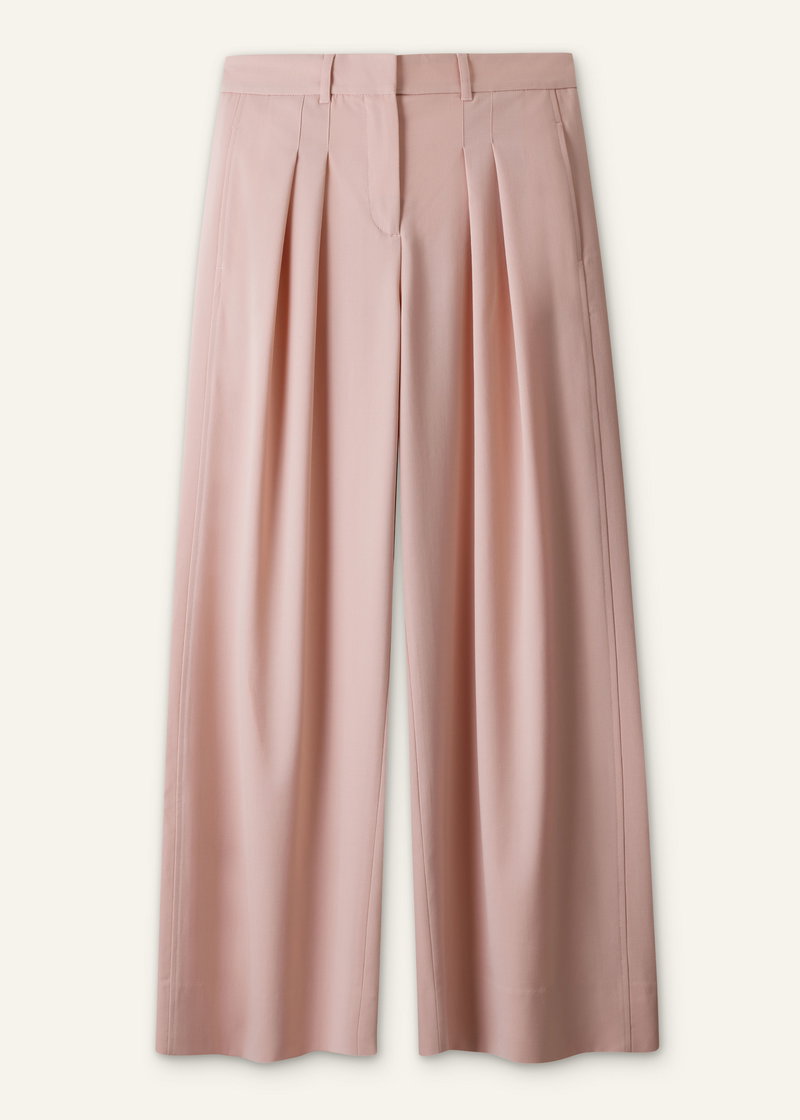ME+EM's Pink Pleat Wide-Leg Trouser is crafted from a soft, lightweight wool tailoring fabric and features pleats suspended below the waistband for a flattering drape.