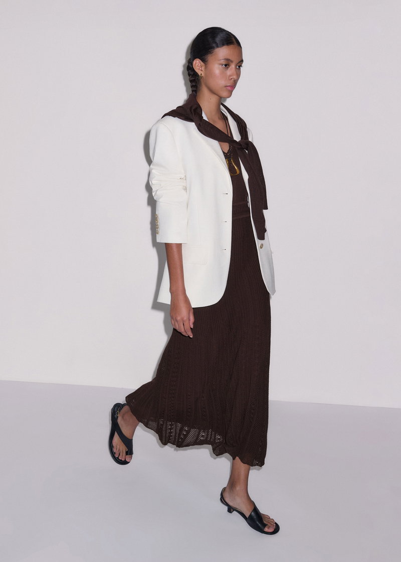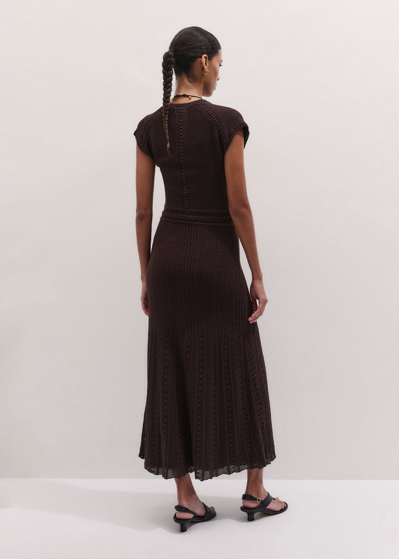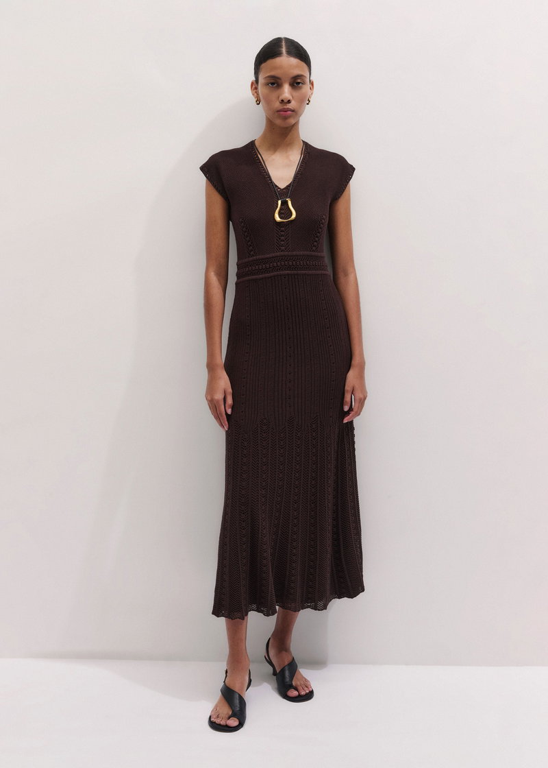 ME+EM's Brown Pointelle Maxi Dress is made from a lightweight cotton blend knit with pointelle stitching for natural breathability.