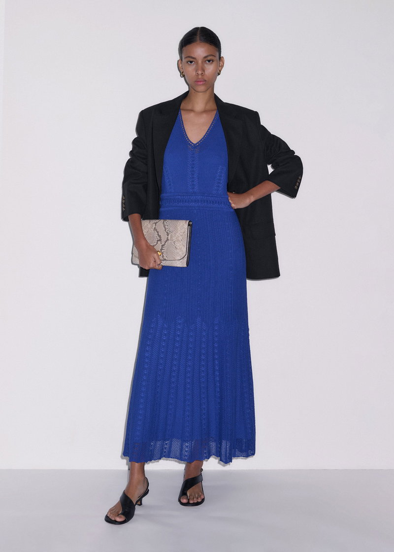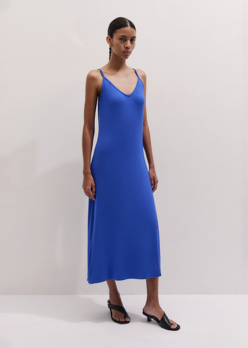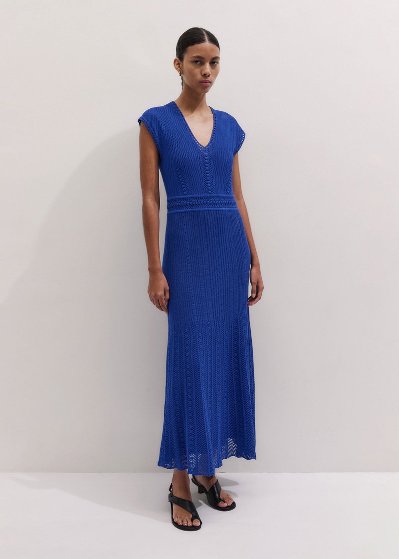 ME+EM's Blue Pointelle Maxi Dress comes with a matching slip that finishes just above the hem for full coverage.
