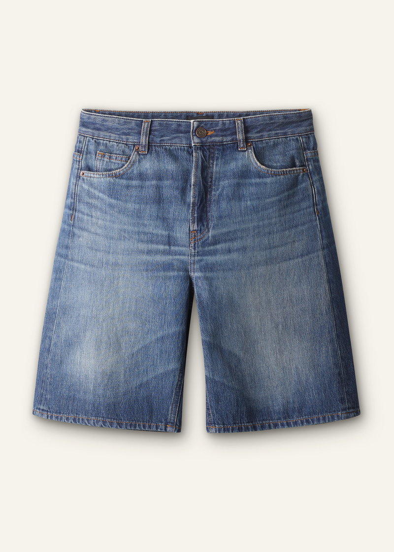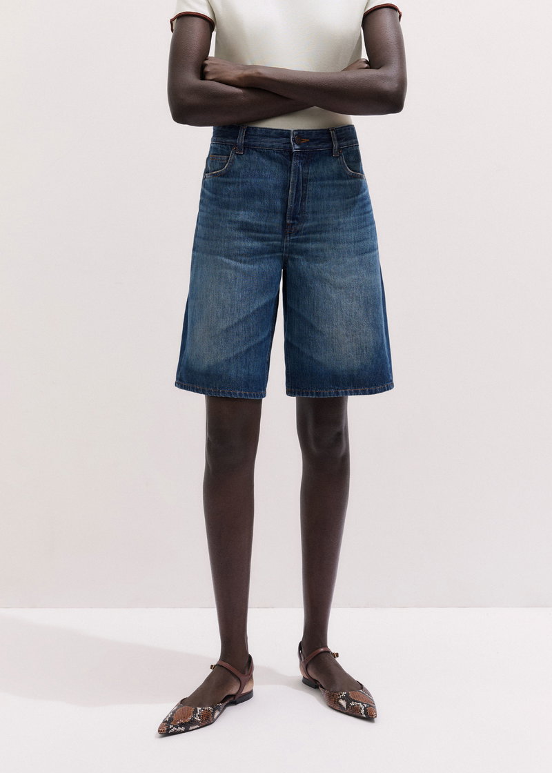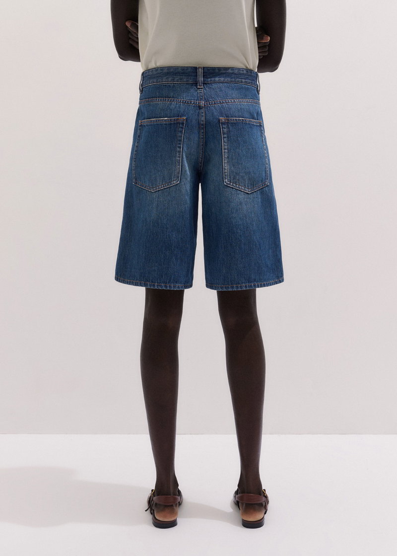 ME+EM's Blue Relaxed Bermuda Short is crafted from Italian cotton denim with fading across the thigh for a lived-in, authentic edge.